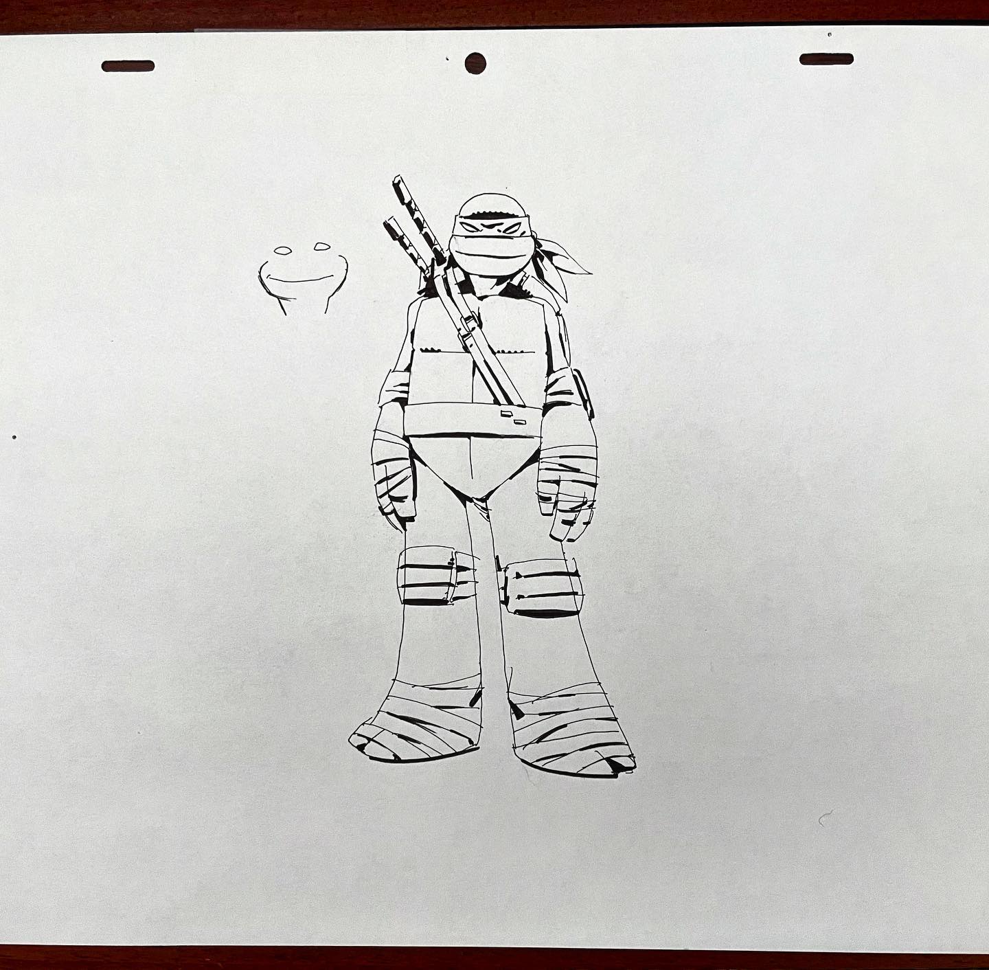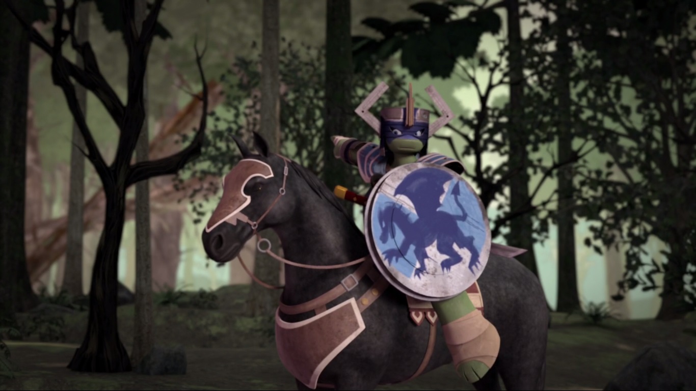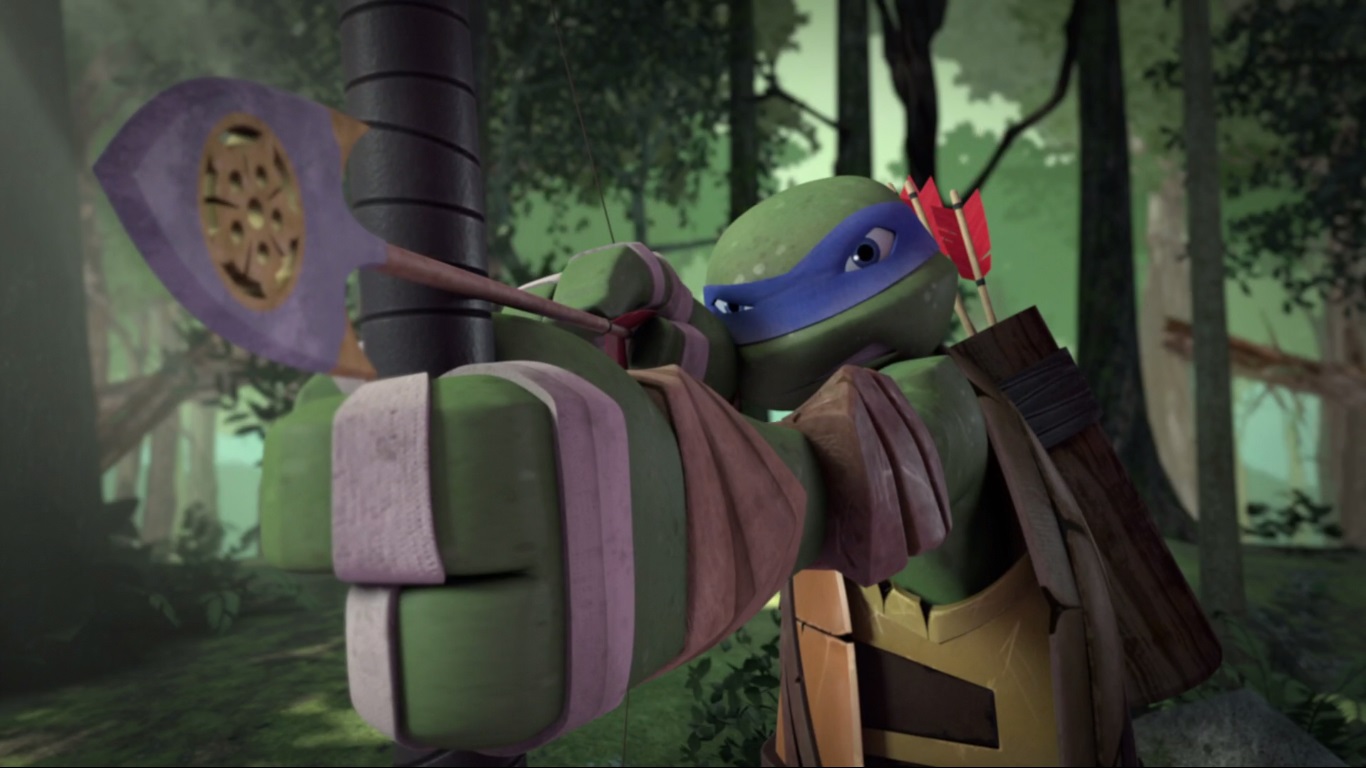Le jeune ninja était chargé de se battre contre des Foot-bots. Il s’agirait d’un entraînement pour les machines, qui avaient déjà apprises les techniques de Karai. Les autres tortues arrivèrent au même moment pour délivrer leur frère et repousser ces machines extraterrestres (Qui est le chef ?, S2 E2).