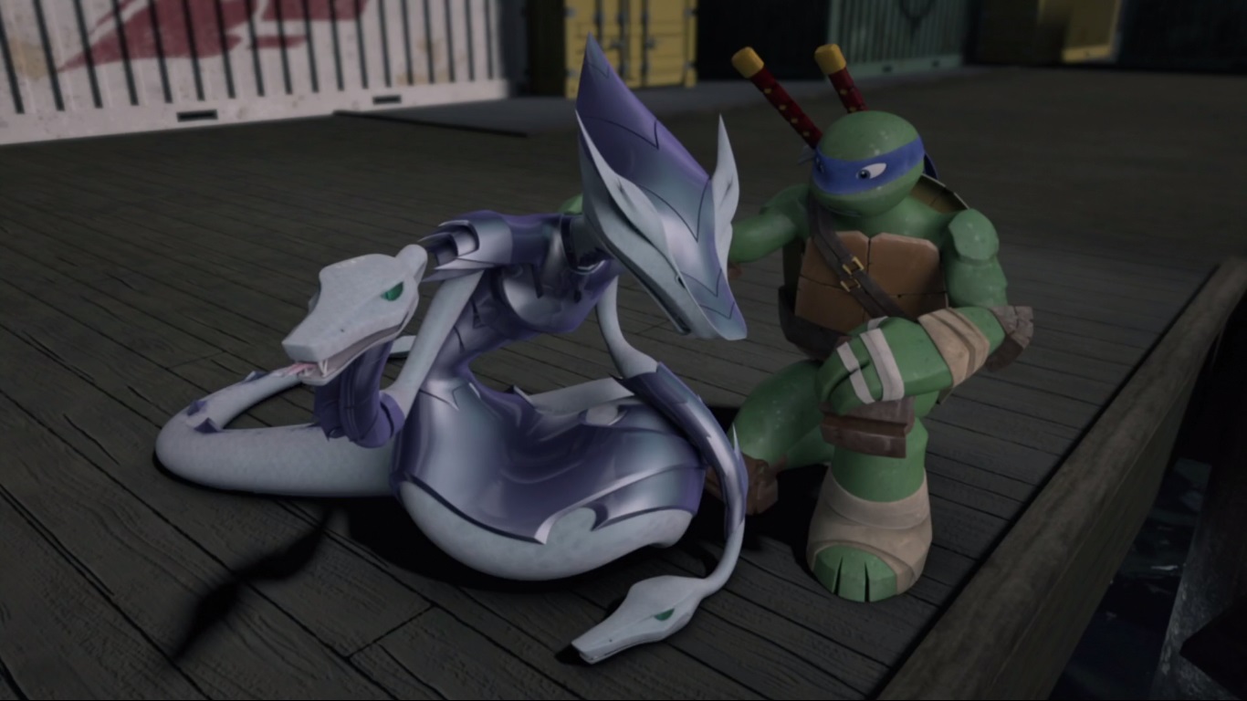 Aveuglé par la destruction de Shredder, Leonardo écouta ses frères quitte à trahir Karai. La jeune femme, qui voulait aider les tortues et éviter le pire pour New York se sentit trahie et affronta Leonardo. Leur combat fut interrompu par l’arrivée d’un vaisseau furtif kraang qui tira sur Shredder. Karai partit sauver son père au grand regret de Leonardo, qui ne voyait plus comment espérer faire tendre la jeune femme de leur côté (L’ennemi de mon ennemi, S1 E20).