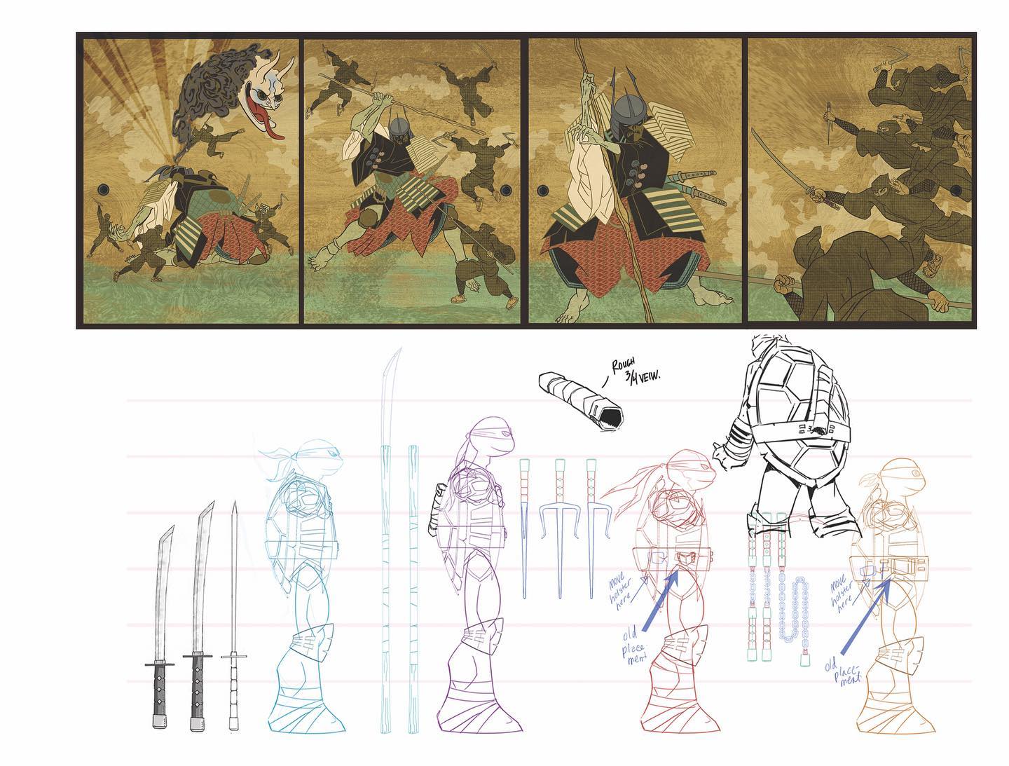 - En écrivant les personnages des tortues, le producteur Ciro Nieli voulait leur donner à tous un élément référant d’un univers passé. Leonardo tenait plutôt du dessin animé de 2003, avec cet air mature et sûr de lui.