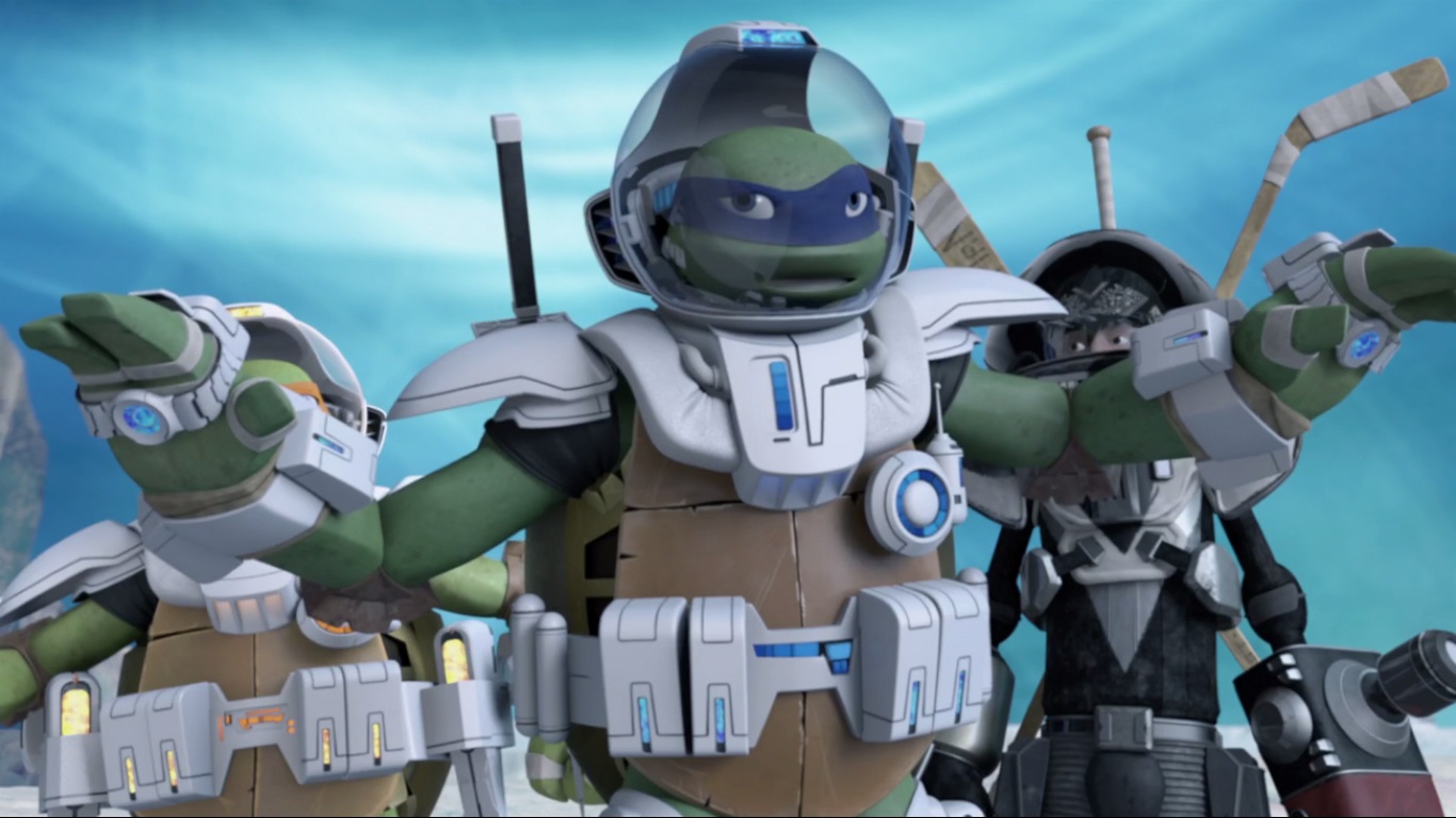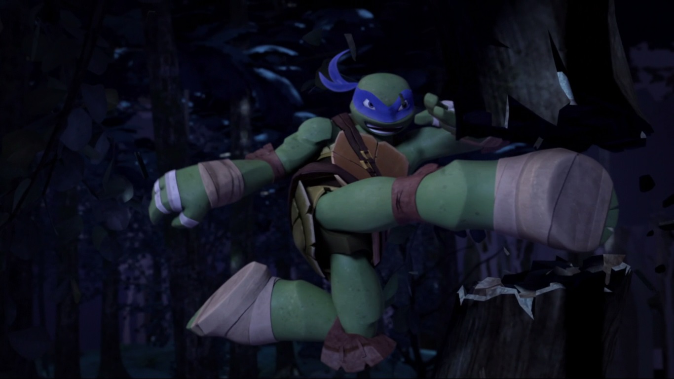 De retour dans les rues, les tortues arrêtèrent un fourgon qui perdit un tube de mutagène sur la chaussée (L’apparition des tortues, part. 1, S1 E1). Ils capturèrent le chauffeur, un humain qui affirmait travailler pour les kraangs, des extraterrestres venus conquérir le monde. À la recherche de leurs origines et voulant sauver les deux humains vus dans la rue précédemment, les tortues tendirent un piège aux kraangs en laissant s’échapper Snake. Leonardo conduisit ses frères à l’assaut de l’un de leurs complexes et réussirent à libérer April, la jeune fille enlevée. Son père ne put être sauvé et fut emmené par les extraterrestres ailleurs (L’apparition des tortues, part. 2, S1 E2).