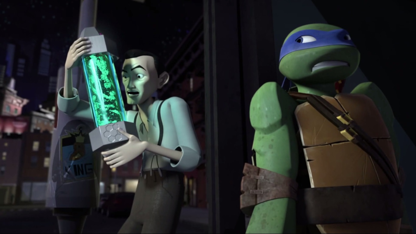 Fières de leur victoire contre les kraangs, les tortues pensaient être devenues invincibles. Lorsque Donatello découvrit que les extraterrestres étaient toujours en ville, il monta un plan pour capturer un vaisseau furtif et découvrir ce qu’ils préparaient. Mais tout ne se passa pas comme prévu et lors de l’abordage du vaisseau, une soixantaine de tubes de mutagène s’écrasèrent à New York. Dès lors, les tortues comprirent être allées trop loin et voulurent rectifier leur erreur en retrouvant les tubes (Mutation accidentelle, S2 E1).