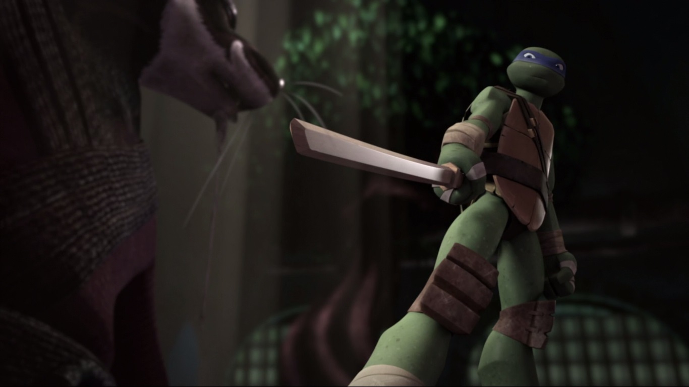 Parallèlement, l’attitude de Leonardo agaçait ses frères au plus haut point. Raphael n’hésitait pas à le ridiculiser lorsqu’il prenait son rôle de chef trop au sérieux. Splinter fit comprendre à son élève le réel but d’un leader. Déboussolé, le ninja repartit en mission avec ses frères à la recherches de nouveaux bocaux de mutagène. Ils firent la rencontre