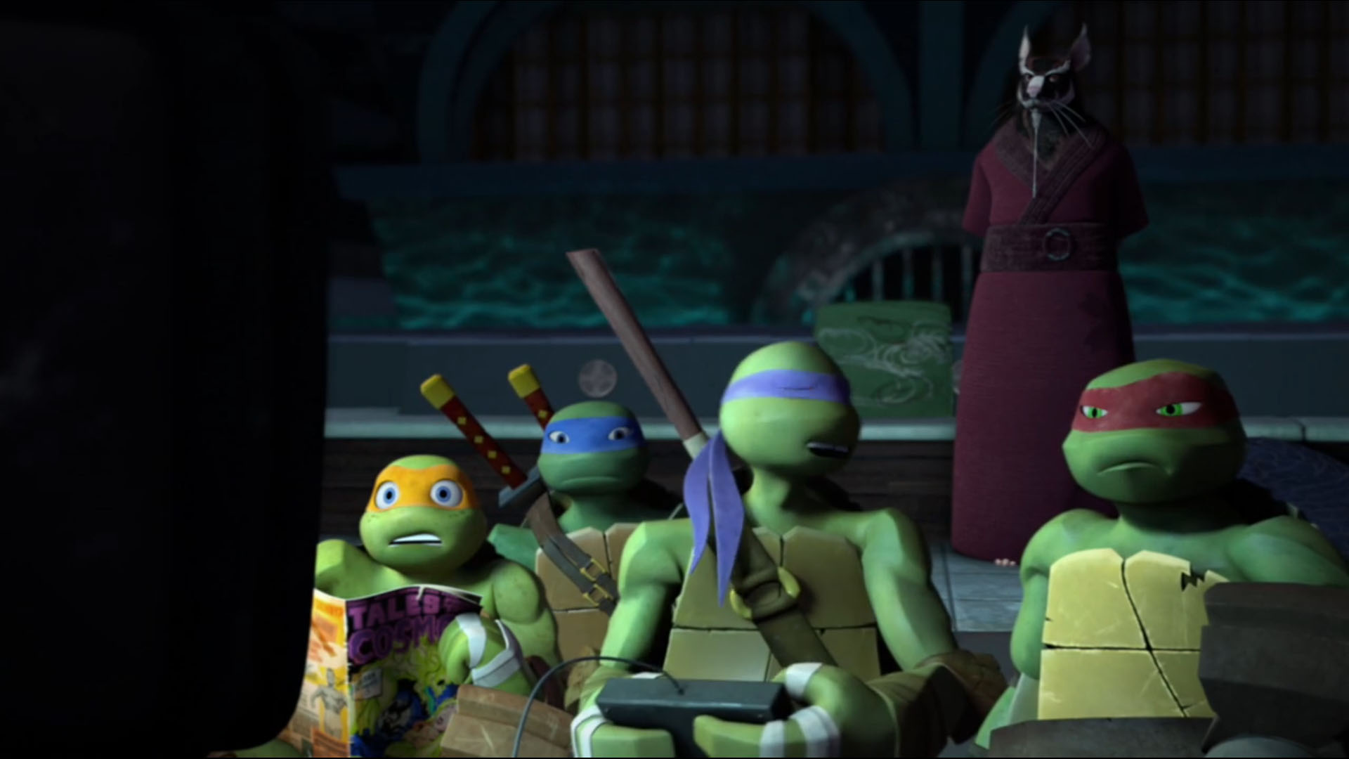 L’homme était déposé sur la table d’analyses du laboratoire pour que le petit génie l’étudie. Effectivement, leur maître n’était pas réjoui de ce qu’il se passait. Après avoir passé un scanner, il découvrait qu’il n’y avait pas un mais deux écureuils. Soudain, la victime se réveillait et commençait à délirer. Puis soudain, pris de spasmes, il crachait les deux rongeurs avant de s’enfuir. Le détecteur de Donatello montrait que les écureuils dégageaient une forte énergie. Au moment de les capturer, les deux petites créatures mutantes s’enfuyaient à travers le repaire. Ils se dirigeaient vers le dojo, où Splinter méditait, non sans laisser un important désordre derrière eux. Après quelques tentatives de capture, le rat entrait en colère. Impossible pour lui de se concentrer. Il voyait l’écureuil dans la main de Leonardo.