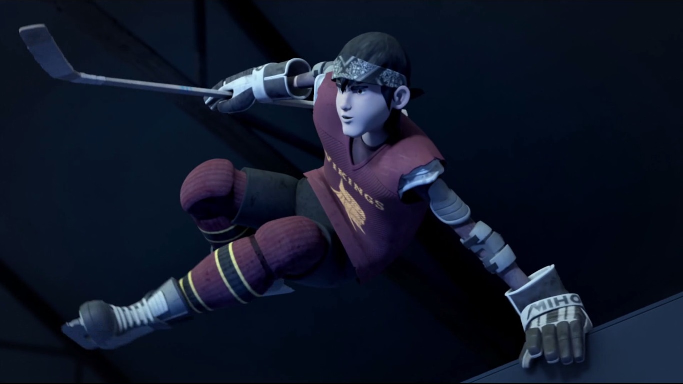 C’est alors que des Foot-bots pénétrèrent dans le stade, décidés à capturer l’étudiante. Les deux amis essayaient de s’en sortir jusqu’à ce qu’April prenne la fuite, appelant Donatello au secours. Casey se frottait aux robots sur la glace, armé de sa crosse de hockey.