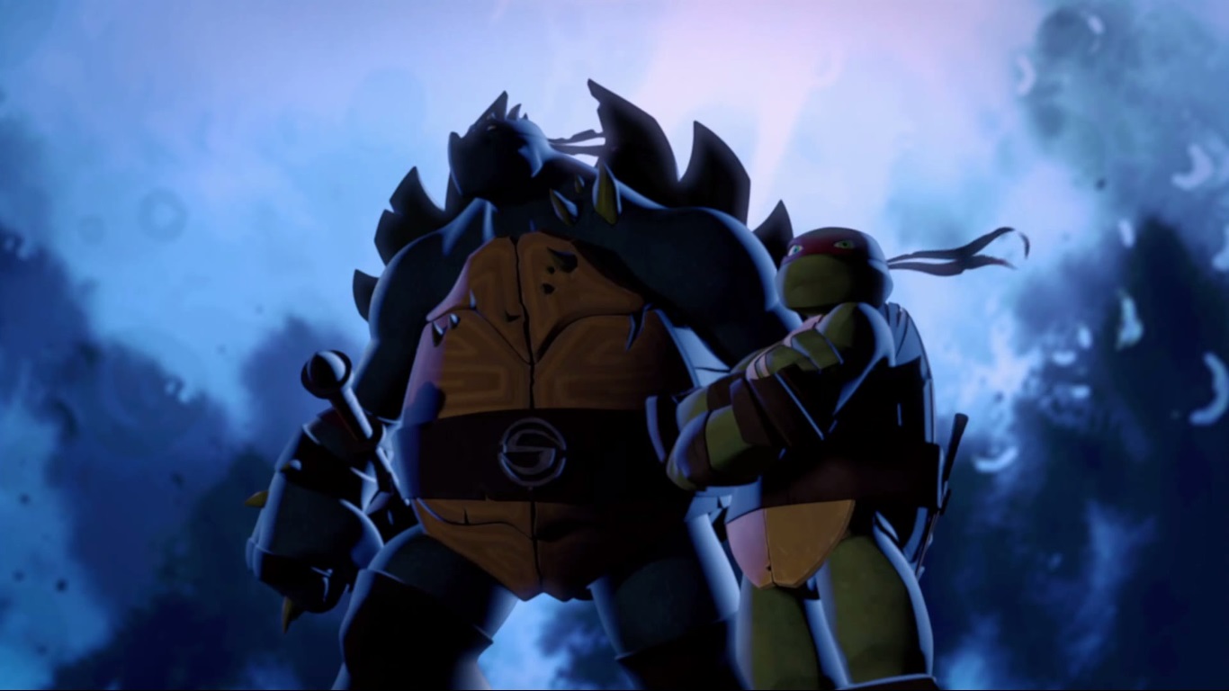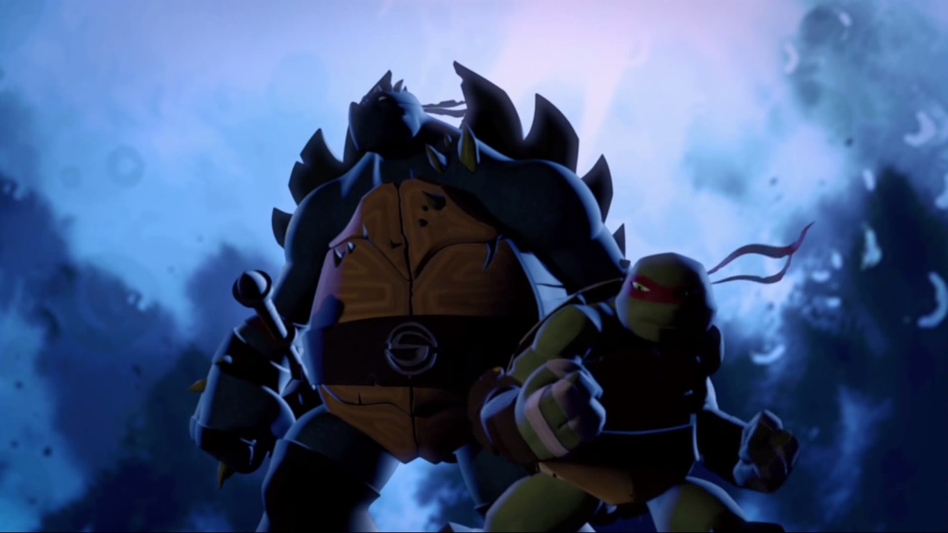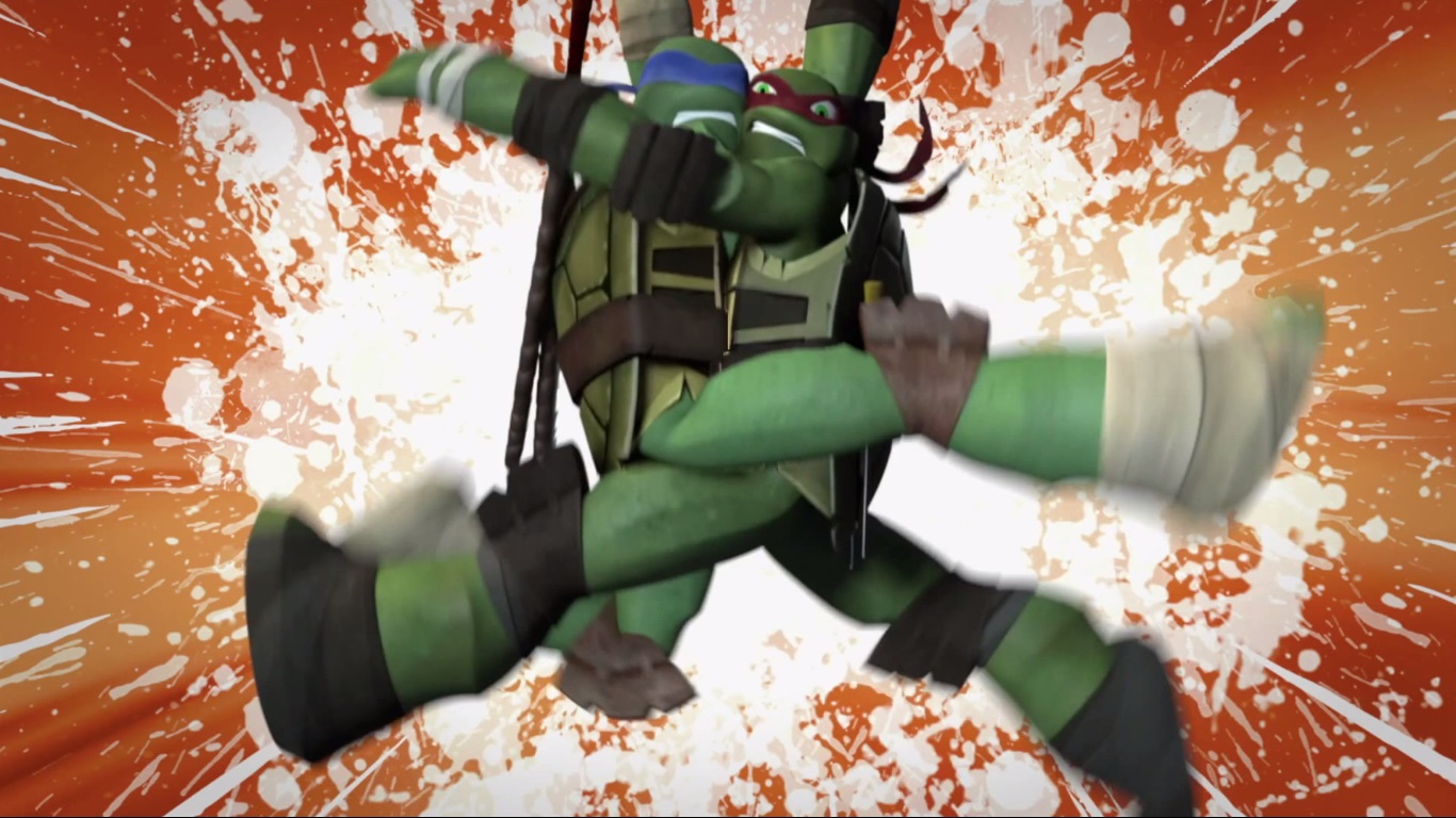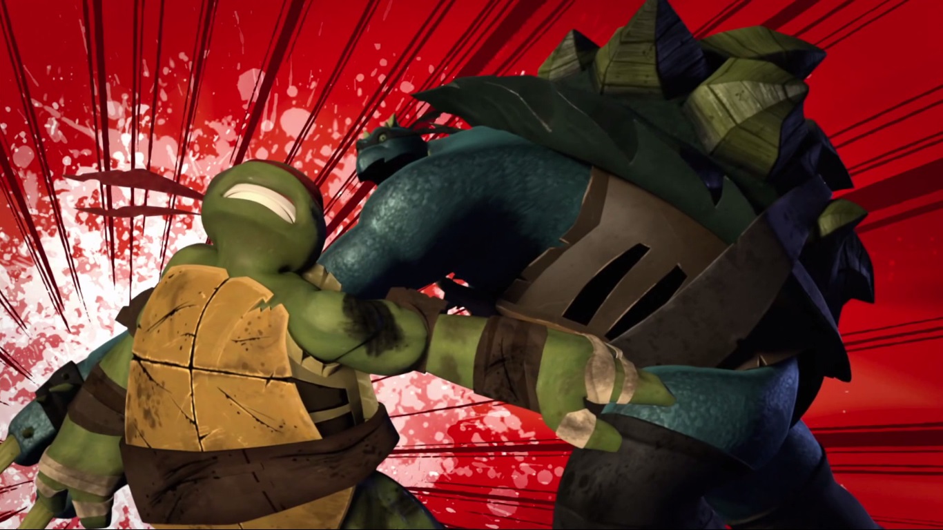 Au moment où Slash désarmait Raphael, Leonardo s’interposait. De rage, il se faisait balayer instantanément. Slash avait un compte à régler particulièrement avec le chef de l’équipe ; le grand rival de Raphael. Combien de fois son maître s’était confié à lui à propos de leurs disputes ? Mais il était hors de question pour le ninja au bandeau rouge de voir Slash décimer sa famille. Son unique chance était d’utiliser une ancienne technique paralysante que Splinter lui avait enseignée. S’attaquant à un point situé sous le bras de Slash, le colosse perdait l’équilibre et s’écrasait au bas de l’immeuble où se déroulait le combat. Désolé pour son vieux Spike, Raphael était surtout préoccupé par ses frères. Après avoir relevé péniblement Leonardo, il s’apercevait que Slash avait disparu.