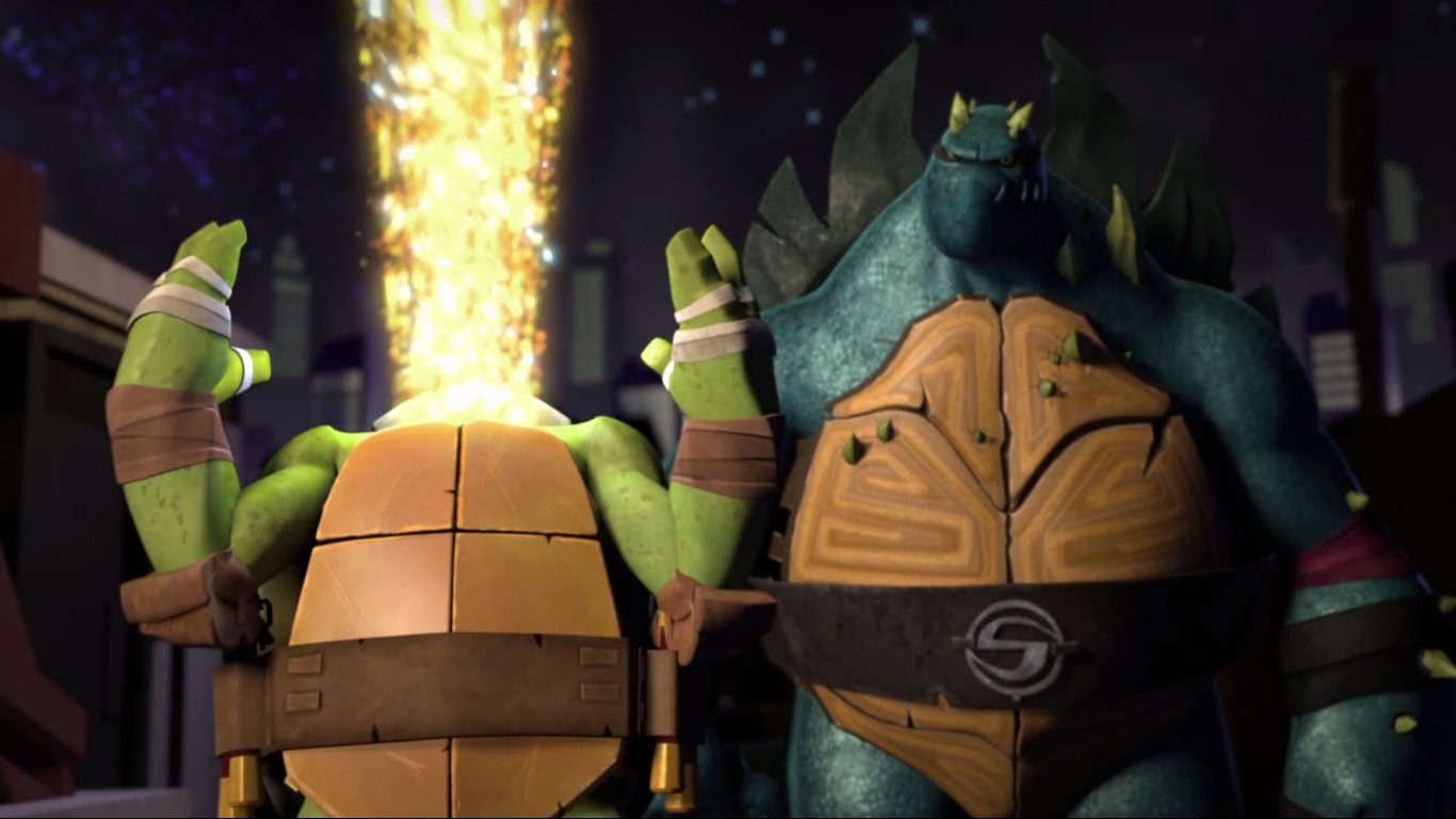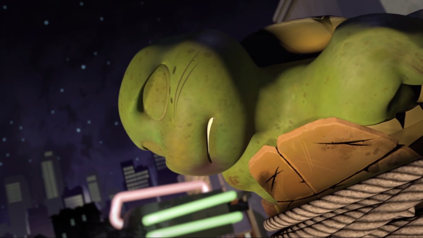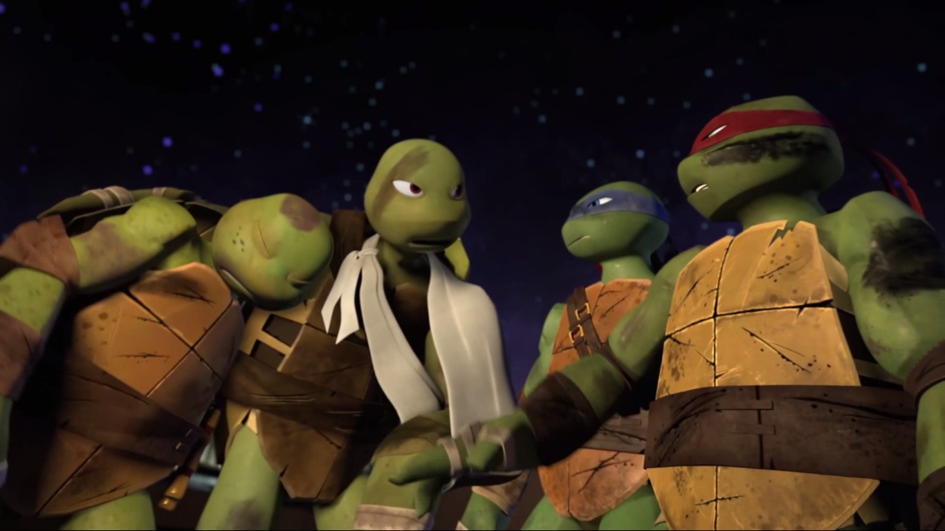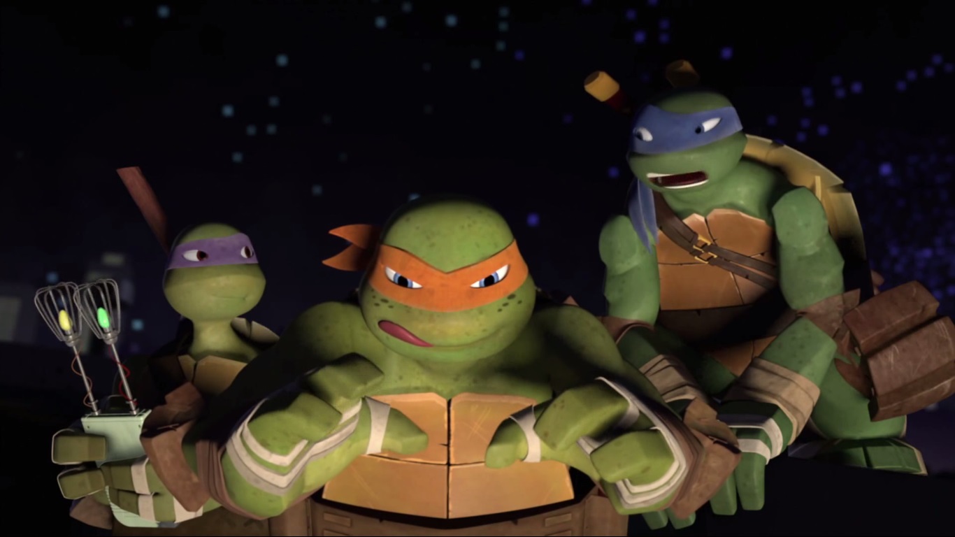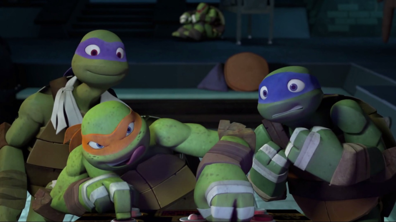 - C’est la première fois que l’on voit les tortues sans masque (Michelangelo et Donatello) dans cette série.
