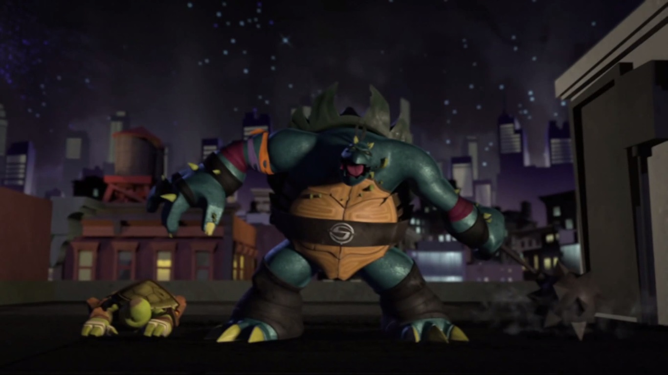 Le nouveau duo traversait la ville d’immeubles en immeubles. L’autre équipe découvrait au même moment le bocal de mutagène en question. Mais un livreur de pizza passant par-là vit l’objet et décida de le garder pensant qu’il s’agissait d’une boisson énergisante. L’attachant à l’arrière de sa moto, il partit à travers les rues de la ville. Leonardo et Raphael s’entrechoquèrent en essayant de récupérer le bocal. Une nouvelle dispute éclatait entre les deux frères. Pendant ce temps, Michelangelo restait sur le toit d’un immeuble pour assister à la scène au loin. Trop occupé par la dispute, il ne s’était pas aperçu que Donatello se faisait silencieusement enlever par Slash.