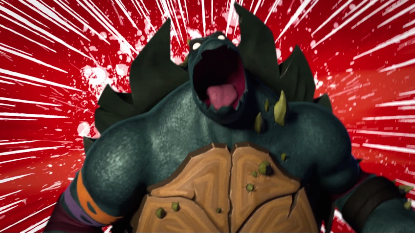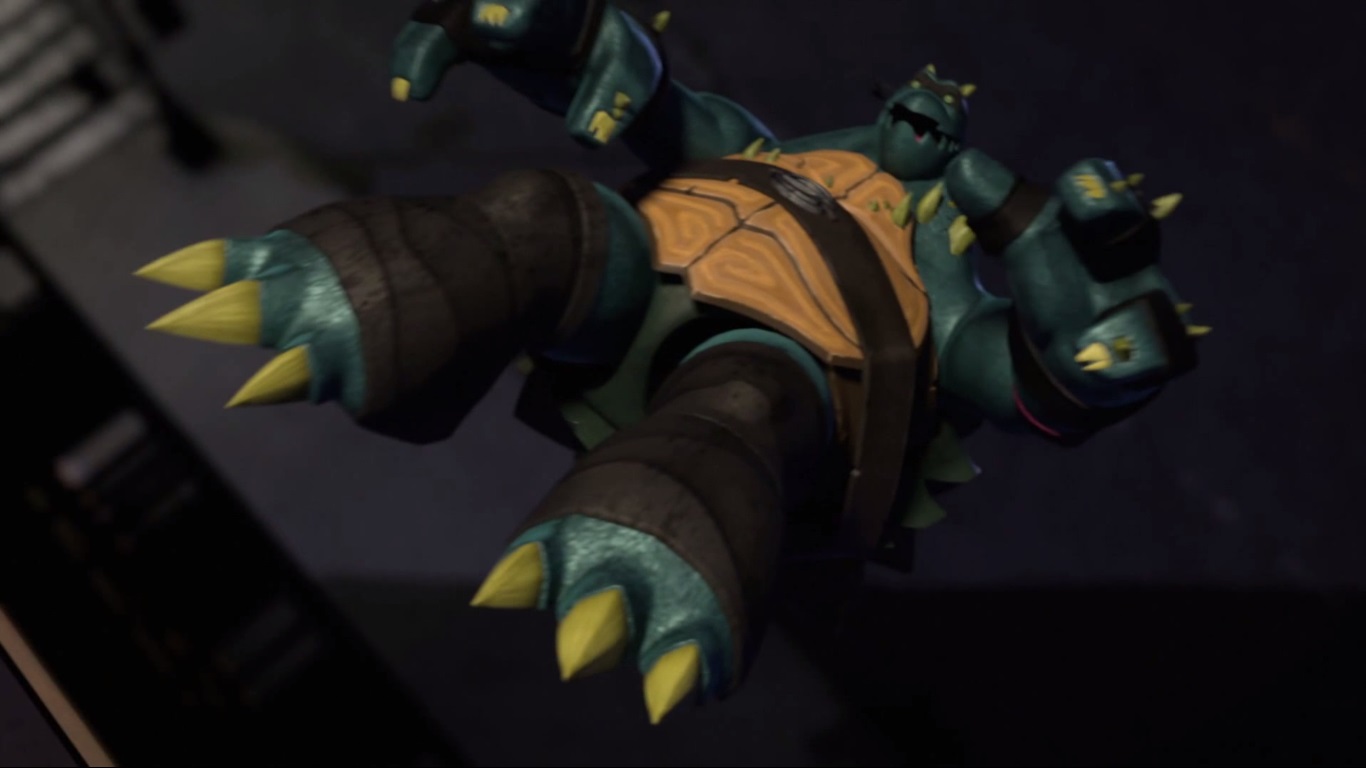 Au même moment, Donatello détectait avec sa machine un nouveau bocal de mutagène dans la ville. Leonardo appelait Raphael pour les rejoindre. La tortue ne lui parlait pas de l’incident avec Spike, et décidait de partir de son côté. Mais avant cela, il fallait armer la cinquième tortue ! Le ninja proposait une massue à Spike, ainsi que des bandages. Le nouveau mutant en profitait pour prendre le logo métallique sur le capot avant d’une voiture. Dorénavant, il se ferait appeler Slash !