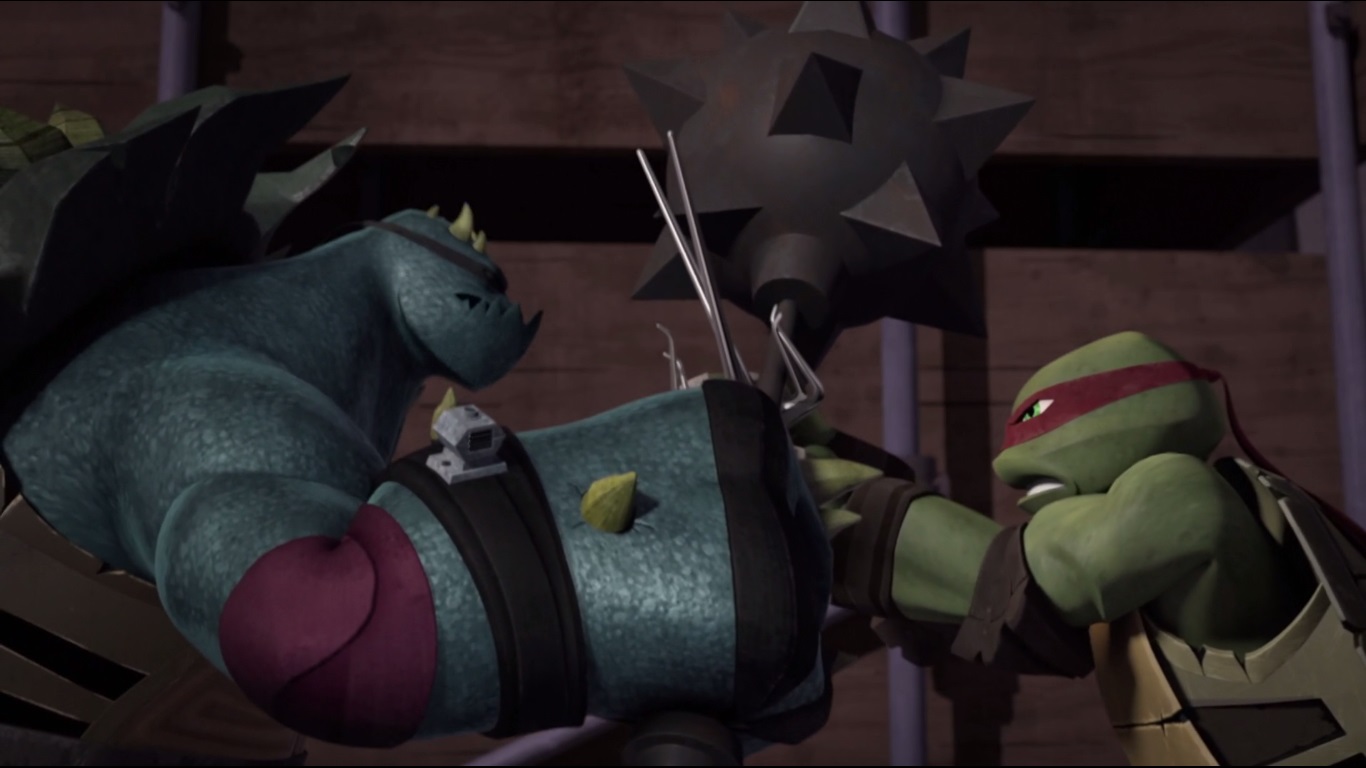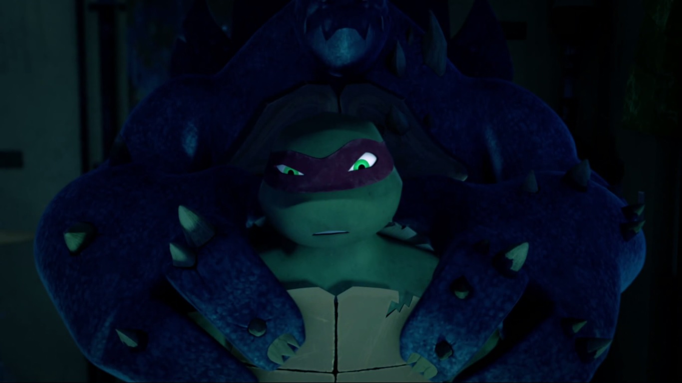 Raphael était hors de lui. Il avait découvert des traces de pizzas sur un numéro de sa collection de magazines ninja qu’il collectionnait depuis six ans. Le responsable n’était autre que Michelangelo, évidemment… Leonardo demandait à son frère de se calmer, ne pas s’énerver pour des choses si futiles tels des objets. Pour accentuer la dispute, Donatello, qui réalisait des expériences sur du mutagène, fit exploser la solution en étude. Cela créait un feu d’artifice dans tout le repaire, le mettant en désordre. Dans l’explosion, Spike manquait de se faire tuer. Raphael l’avait sauvé de justesse. Rien n’allait, la tortue ne parvenait pas à se faire comprendre et en avait assez de ses frères. Il partait dans sa chambre, Spike sous le bras. Il avait également subtilisé le bocal de mutagène de Donatello pour qu’il arrête ses expériences dangereuses.