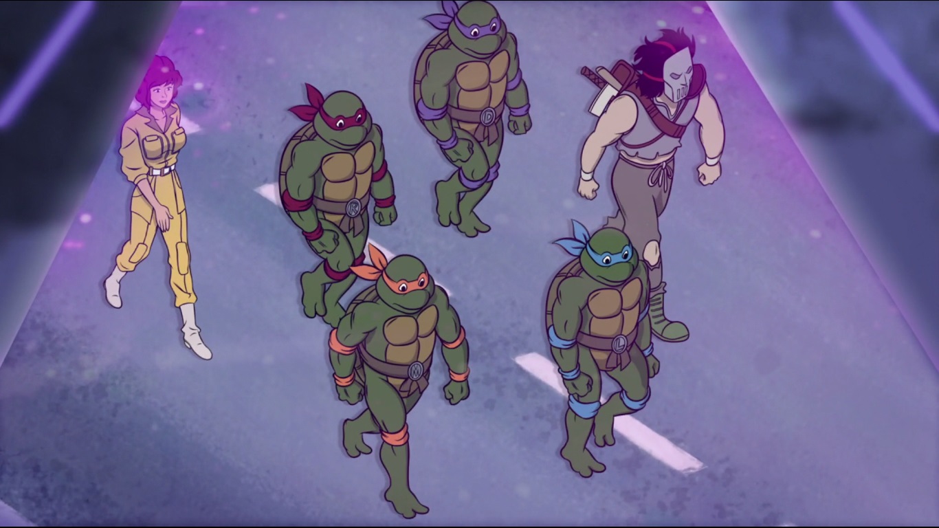 - Les tortues de 1987 sont physiquement assez décevantes dans cet épisode, par rapport à ce qu’elles étaient dans leur propre série.