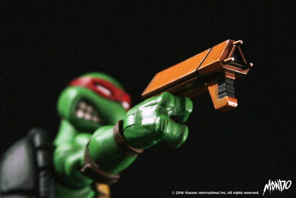 Raphael était la dernière figurine de Mondo à être présenté pour la gamme 1/6 Scale tirée du comic de 1984, le 19 janvier 2016. Son personnage avait été présenté pendant la San Diego Comic Con 2015 aux côtés de ses trois frères. Sa figurine est entièrement articulée (25 points) et accompagnée d’un très grand nombre d’accessoires. La figurine devait voir le jour initialement au troisième trimestre 2016. Elle n’est sortie qu’en septembre 2017, accusant comme le reste de la gamme un important retard.