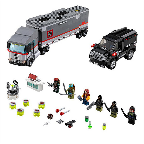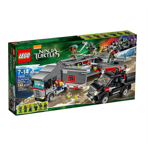 Big Rig Snow Getaway (79116) contient 741 pièces, et devrait couter environ 70$. Sur ce passage, il est question de sauver April, retenue par Karai et les Foot. Le set contient les minifigurines suivantes : April, Raphael, Leonardo, Karai et deux Foot.
