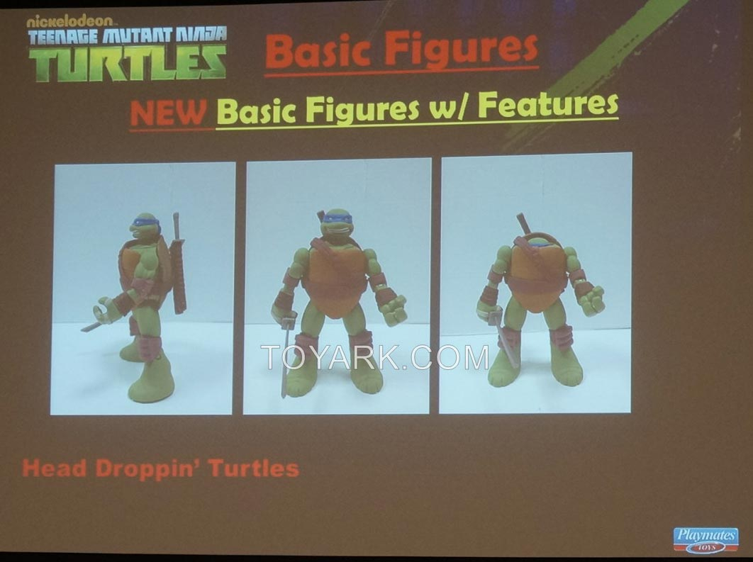 Une gamme qui avait déjà rapidement été présentée au Toy Fair de 2014, les 11’’ Interactive Talkin’ Turtles. Ces quatre tortues de grande taille ont un système pour pouvoir communiquer entre elles, se reconnaissant, et élaborant des dialogues selon les situations.