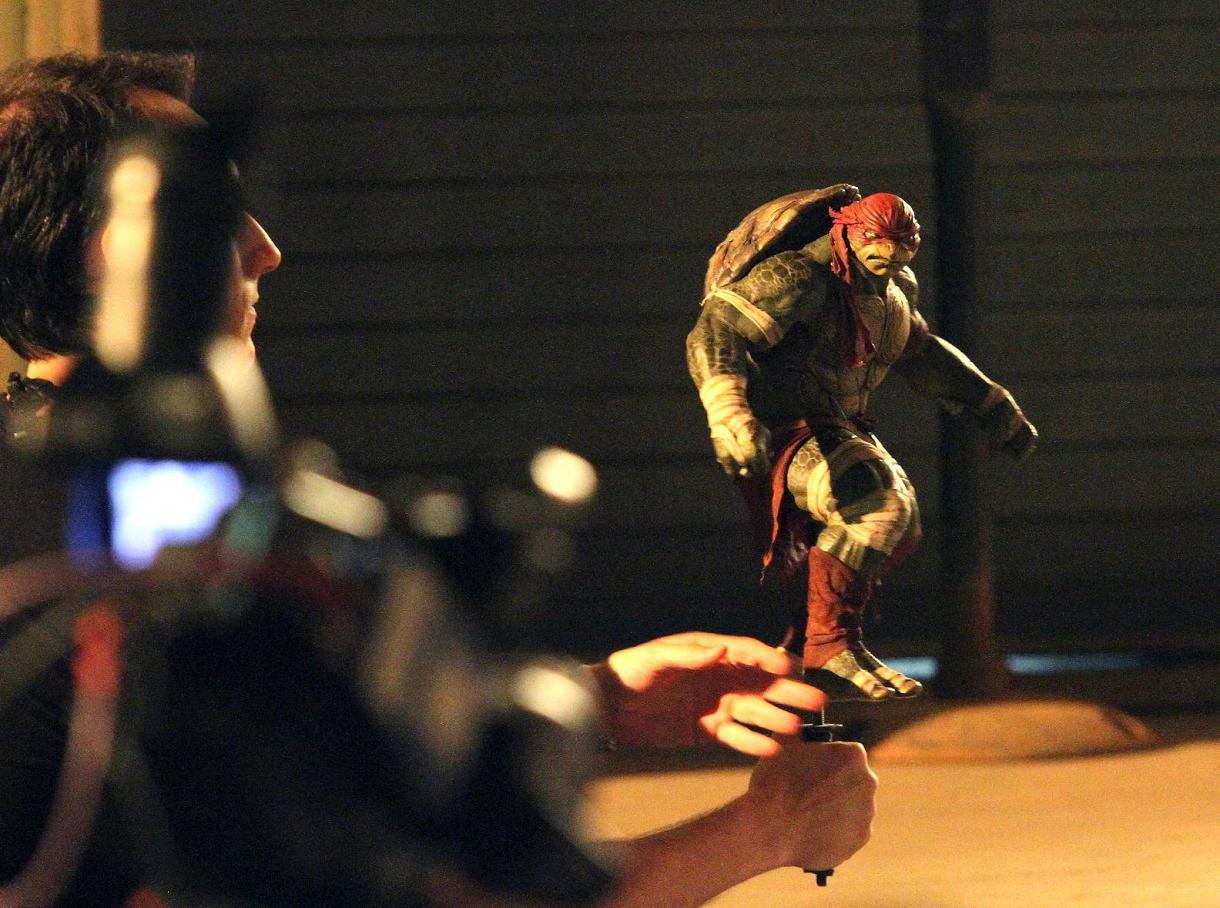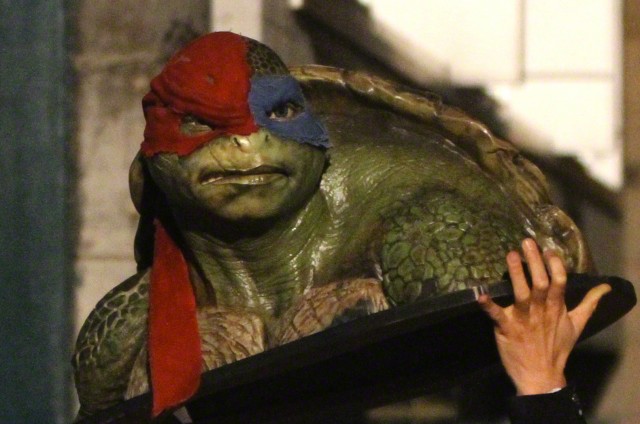 Quelques autres images. Vous pouvez y voir l’acteur Tyler Perry (Dr. Baxter Stockman) mais surtout les maquettes de Leonardo et de Raphael. Par ailleurs, sur Facebook nous vous annoncions que Raphael risquerait de ne pas avoir tant d’accessoires, comme les lunettes de soleil, au vu de l’une de ces maquettes. En réalité, il s’agit de la MÊME maquette que celle utilisée pour le tournage du premier film. Il n’est donc pas possible, au stade actuel des informations, de tirer des conclusions sur l’apparence des tortues.