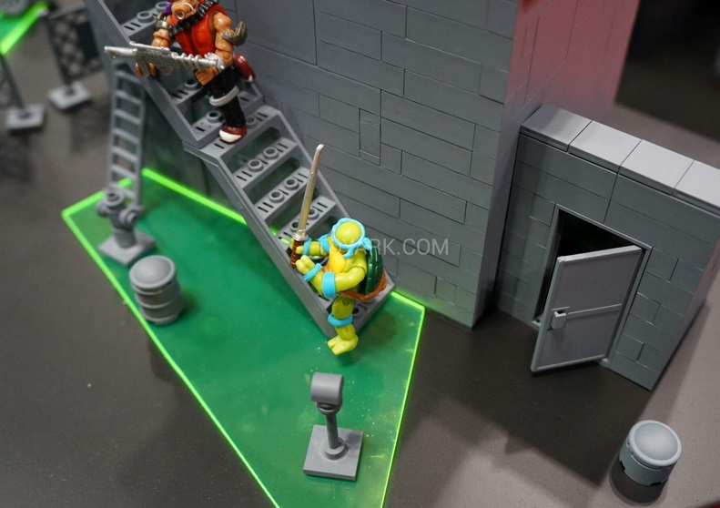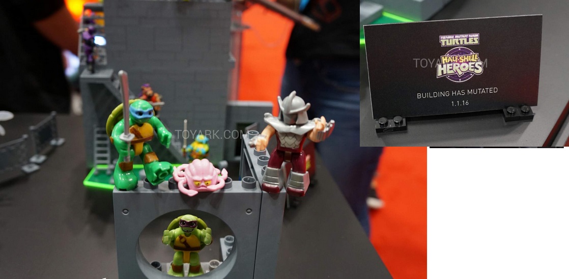 Comme toujours, les personnages sont très fidèles à leur modèle de base, avec la patte de Mega Bloks. Beaucoup plus de détails et de reliefs que les minifigurines de Lego. On n’a pas encore pu voir en détail les playset qui les accompagneront. Mais qu’est-ce qui pouvait bien être inattendu ? La série animée de 1988 fera également l’objet de toutes nos attentions. Un diorama fut posé sur le stand de la brique canadienne montrant les tortues du dessin-animé original, Bebop, Rocksteady, des Foot et Shredder. Enfin, une gamme Half Shell Heroes sera également produite.