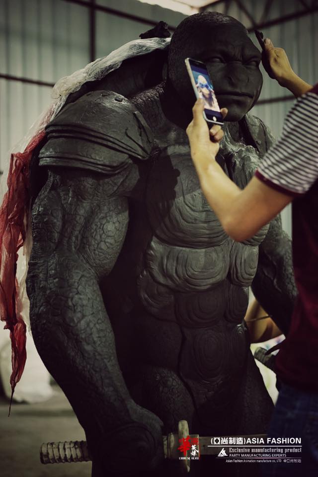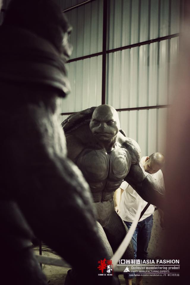 Au moment où nous rédigions le résumé du mois d’octobre le mois dernier, nous étions tombés sur un article sur le Technodrome montrant d’impressionnantes statues des tortues de la nouvelle série de films de Paramount. Elles furent produites en Chine, mais à quelle fin ? C’est ASIA Fashion Party Manufacturing Experts qui s’occupe de la réalisation de ces colosses. Ce n’est donc pas n’importe quel particulier qui planche sur ce projet. Serait-il donc possible que ce soient des produits publicitaires pour le prochain film ? Si nous ne pouvons répondre à cette question actuellement, les images des tortues nous en apprennent un peu plus sur leur design éventuel dans le second opus. Visiblement, elles auront toujours une partie de leur armure au moins. Hélas leur état d’avancement ne permet pas d’en savoir beaucoup plus. Mais c’est surtout sur le visage de Donatello que nous nous sommes arrêtés. Il semble apparemment bien plus élargi, plus semblable à ses frères.