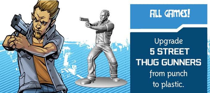- Thug gunner punch (x5) (jetons pour la version magasin, figurines pour les contributeurs à Kickstarter)