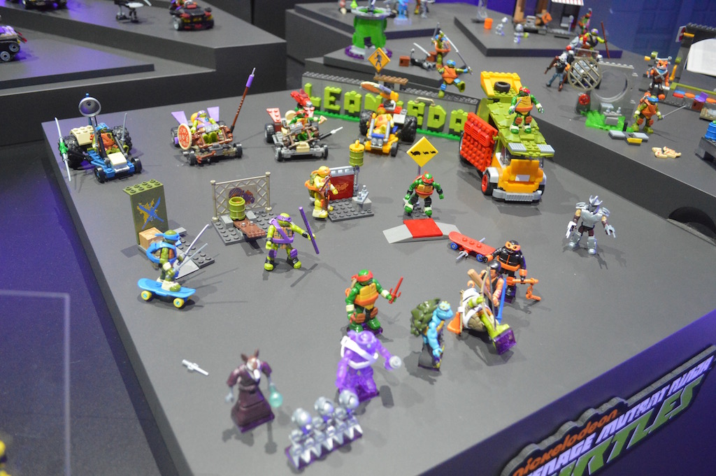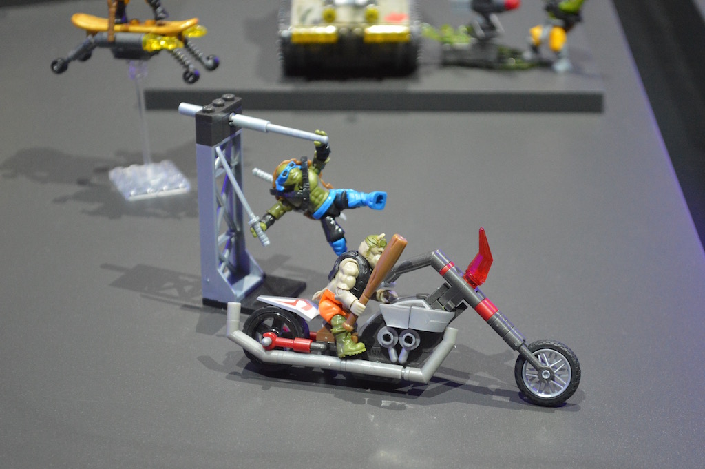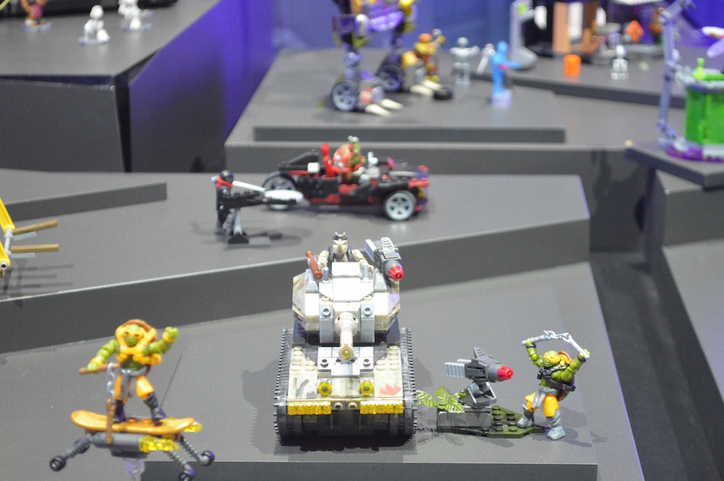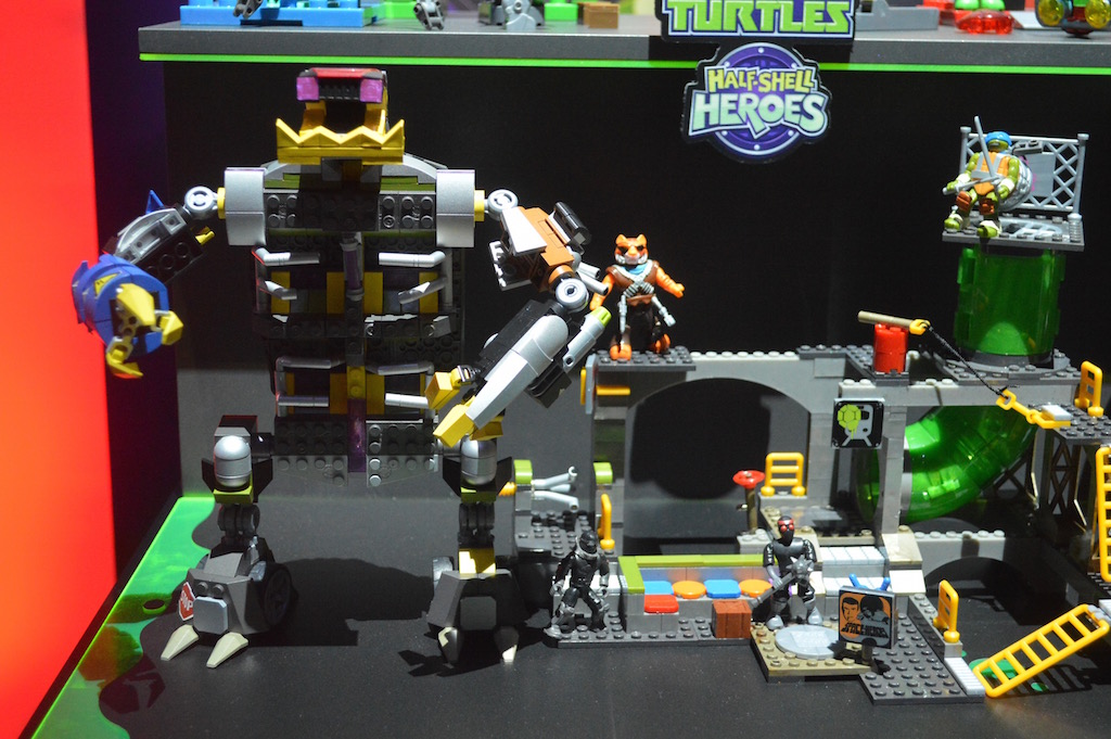Pour la ligne de la série actuelle de Nickelodeon, Megabloks prévoit également beaucoup de bonnes choses. La première grande nouvelle, le Turtle Mech de Donatello! Mais le robot ne sera pas la seule nouveauté. Un set cinéma sortira également avec Rahzar. Les figurines de Slash, un kraangdroid ailé, un dragon pourpre et Splinter étaient également présentes. A noter également un Donatello transparent et un qui semble être en mode Mystique.