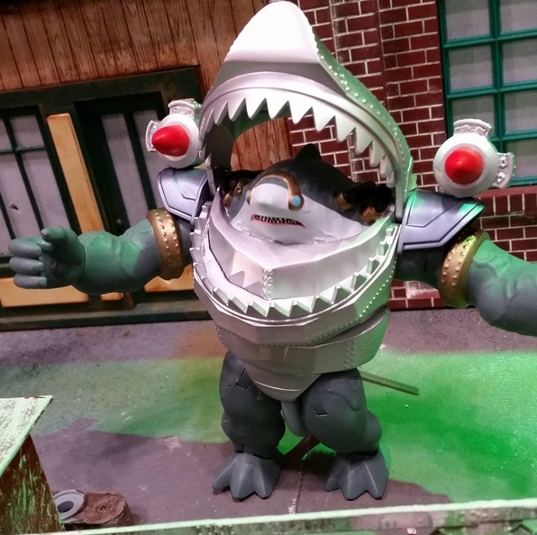Autre absence, les personnages de base de la série de Nick. Mozar et Lord Dregg ne pointent le bout de leur museau que depuis la fin du mois de janvier un petit peu partout aux Etats-Unis, sachant qu’ils étaient exclusivement disponibles chez certaines enseignes depuis septembre. April, Casey et le Robug font partie de la même vague de figurines, et sont sortis en même temps, depuis quelques semaines. Ce qui nous amène à présenter les deux grands nouveaux du salon : Armaggon, le requin chasseur de prime qui fait ses débuts dans les premiers épisodes de la saison 4, et ENFIN une version humaine de Karai. Réclamée depuis 2013 par les fans, la figurine sortie en 2015 en mutant serpent en avait déçu plus d’un. La voici enfin en humaine !