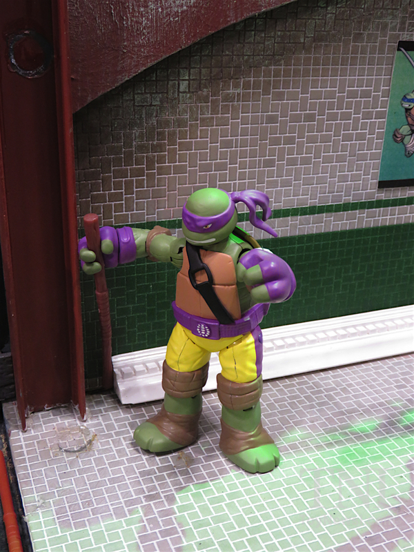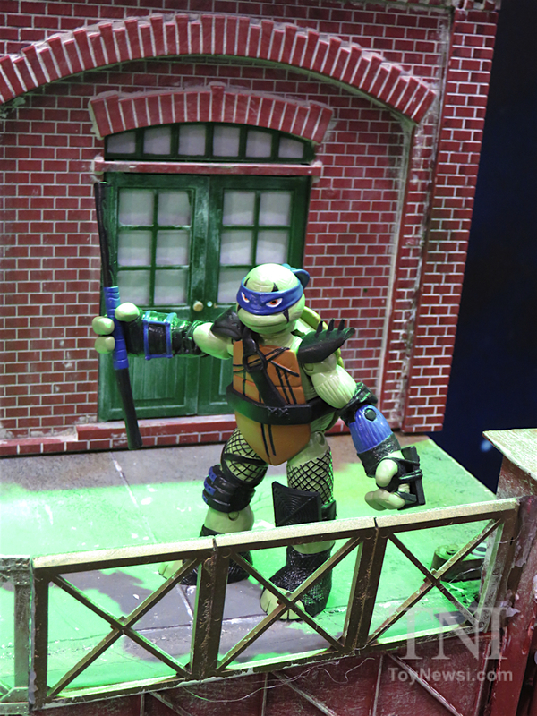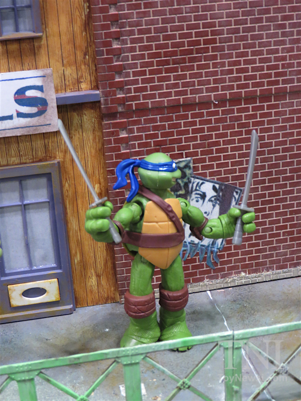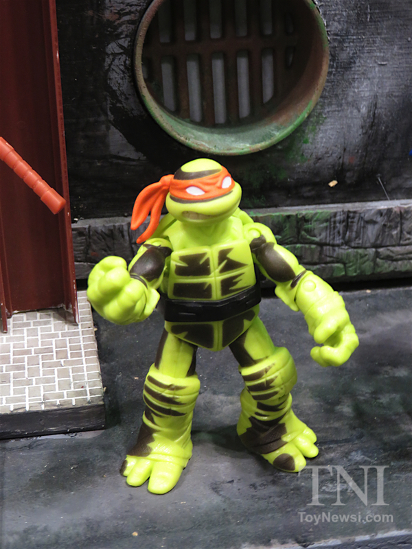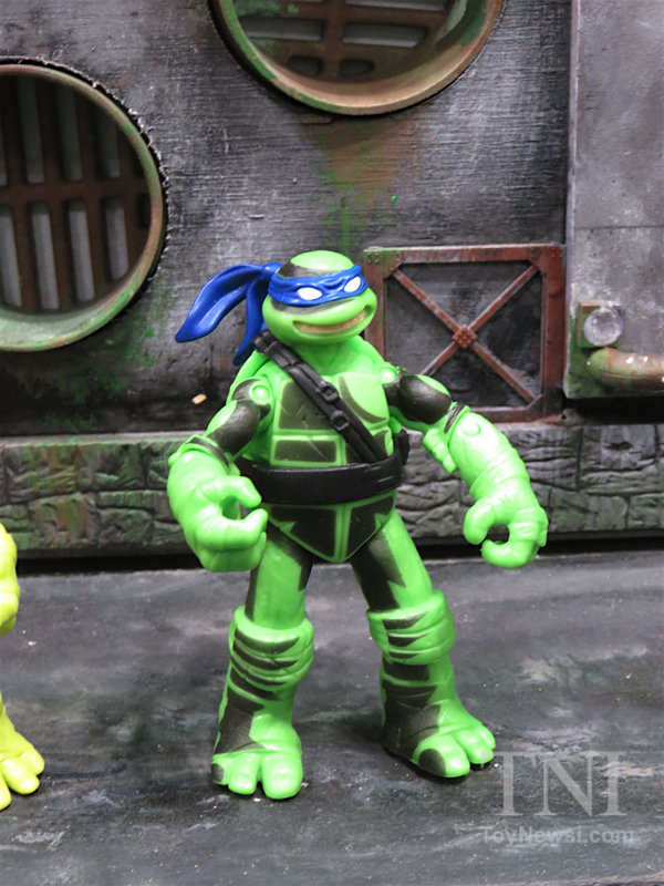 Michelangelo et Donatello sont également réalisés avec un mécanisme leur permettant de tirer la langue (ce qui rappelle beaucoup le Toon Mike de 1992) et à Leonardo de sortir ses yeux (ce qui rappelle beaucoup le Toon Leo toujours de 1992). Le mécanisme de la langue qui sort avait déjà été exploré à travers Attila the Frog également l’année dernière. Le mécanisme des yeux de Leonardo est fait pour qu’ils restent sortis après la pression sur le bouton de la carapace. Il faut appuyer sur ses yeux pour les rentrer.
