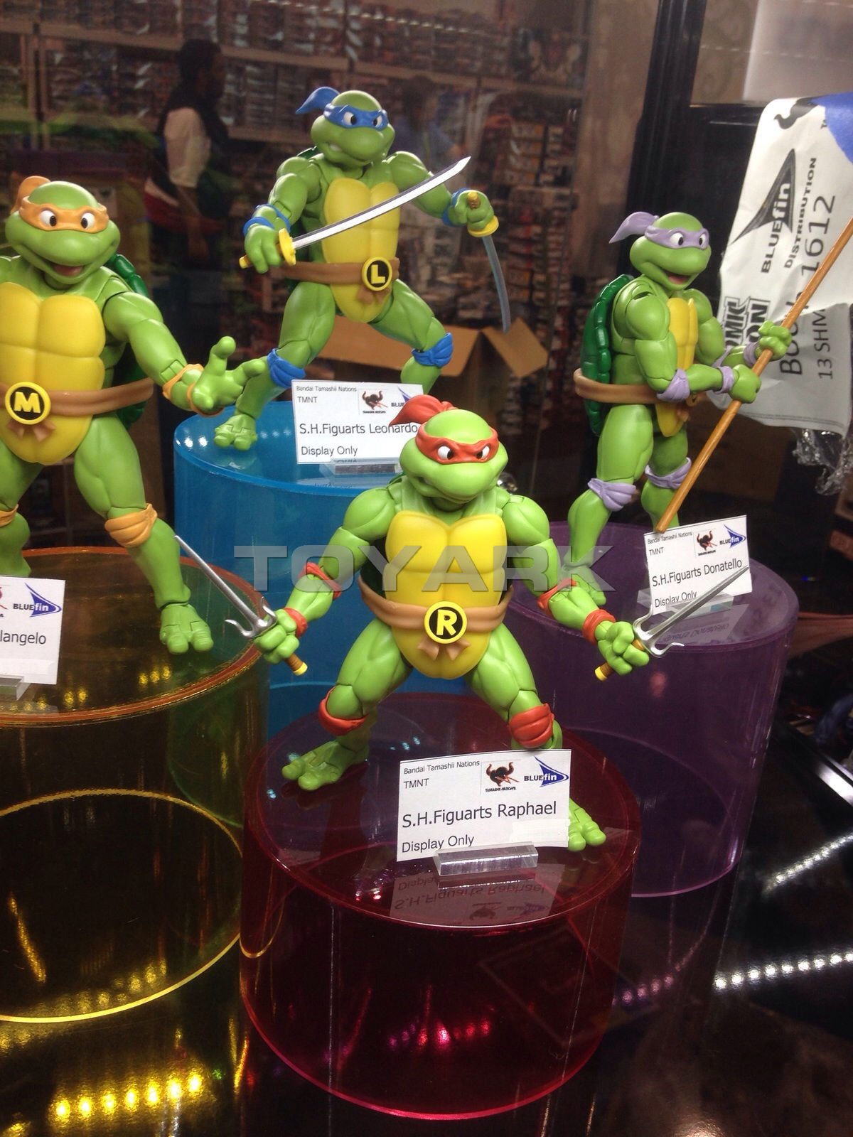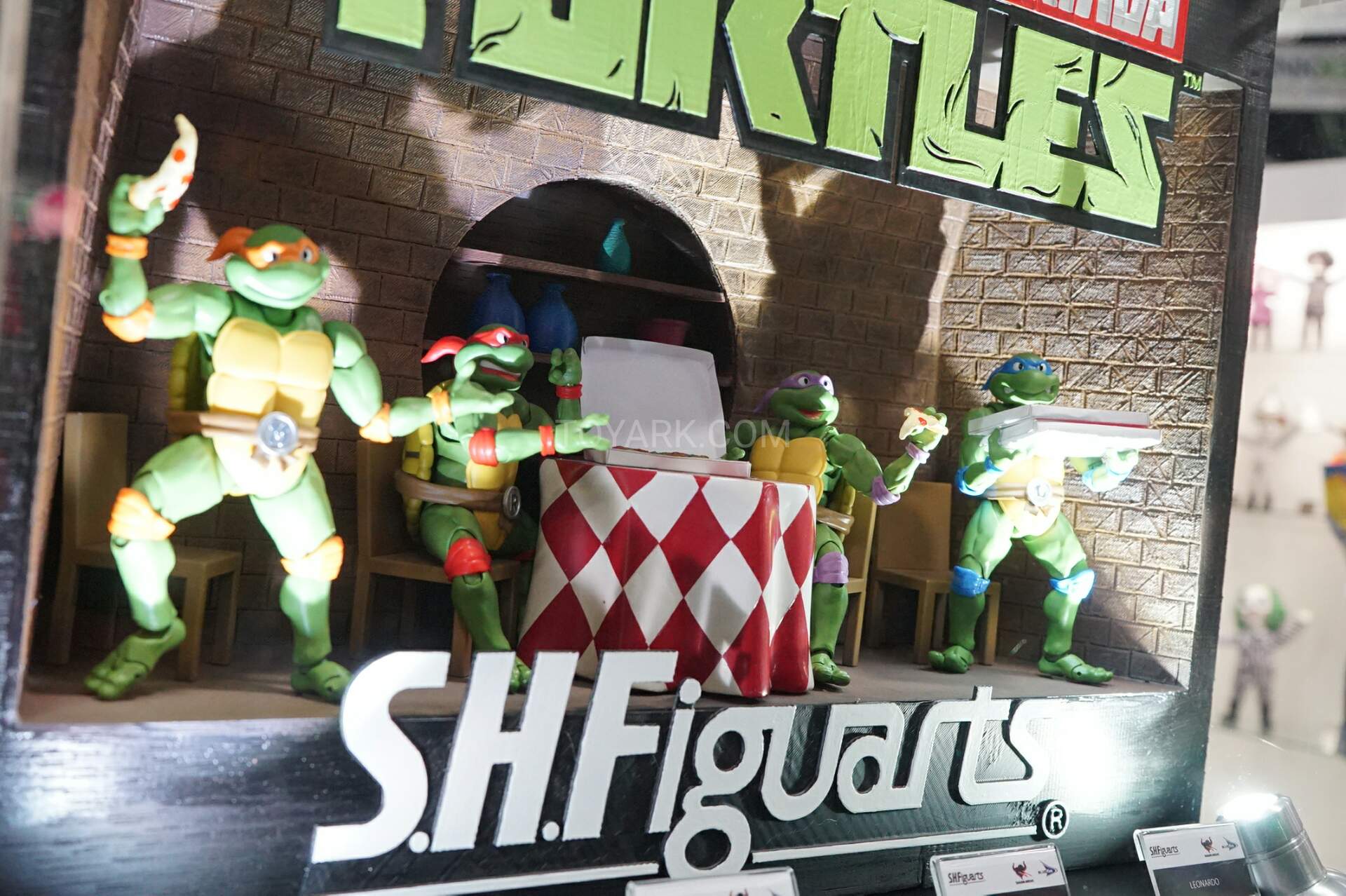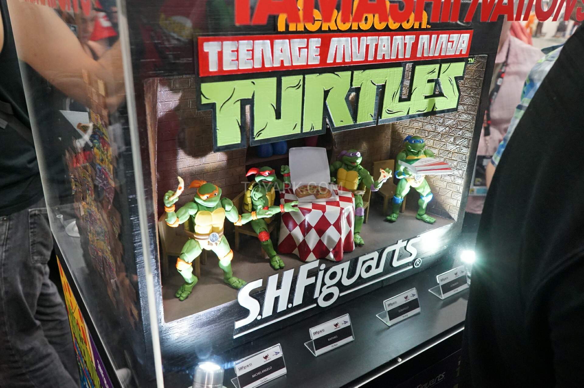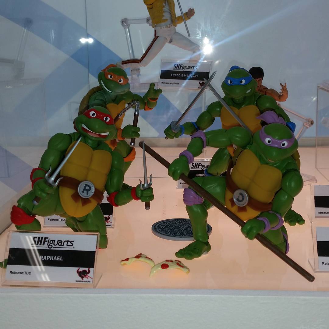 Les tortues, dont les précommandes ont été ouvertes il y a maintenant plusieurs mois, ont souffert d’une altération dans leur date de sortie. Ainsi, Leonardo et Donatello verront le jour non plus en août, mais en septembre prochain. Raphael en novembre et Michelangelo en décembre. Les tortues étaient également présentées derrière la maquette du Technodrome, dans un décor représentant leur cuisine dans les égouts.