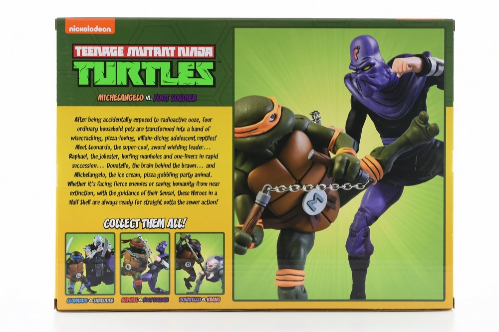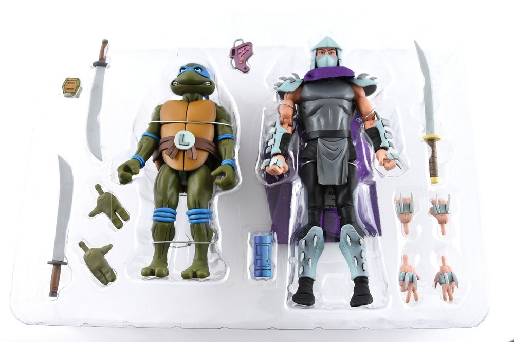 MAIS ! Les figurines du dessin animé de 1987 vont bel et bien sortir en France, et cela est d’ores et déjà officiel. Vous pouvez les précommander sur certains sites en ligne. Comme aux États-Unis, ces figurines sortiront dans des doubles packs (Leonardo Vs. Shredder, Donatello Vs. Krang, Raphael Vs. Foot Soldier et Michelangelo Vs. Foot Soldier) (en savoir plus). Ces packs sont prévus pour le moment pour septembre 2019. Si ces figurines sont vendues en exclusivité chez Target aux États-Unis, aucune enseigne n’a encore été dévoilée, en dehors de ces sites internet. Alors, exclusivité du web, vente dans les magasins spécialisés ? Affaire à suivre de très près ! Attention toutefois car certains gonflent vraiment les prix, allant entre 50 et 60€. Ces figurines sont vendues 50$ en magasin outre Atlantique.