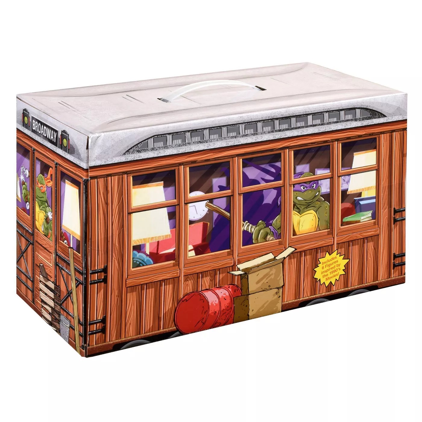 Le pack propose les quatre tortues, Splinter et Super Shredder. Le packaging rend hommage à celui des figurines Movie stars sorties en 1991 et 1992, à l’occasion du deuxième film des Tortues Ninja. Pour rappel, Playmates Toys avait préféré ne pas s’associer à la production du premier film, le trouvant trop violent et craignait qu’il ait un impact négatif sur la licence qui rencontrait un véritable succès depuis un peu plus d’un an (pour en savoir plus).