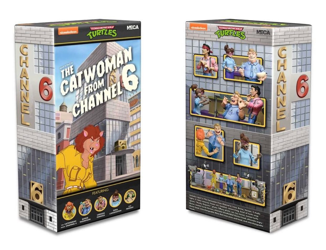 Enfin, un pack de quatre personnage a été présenté, avec l’équipe de Channel 6. April sera également présente, avec des membres interchangeables, pour la transformer en chatte mutante. Irma sera également transformable en rat, permettant de faire un duo avec le Vernon du pack avec Rat King. Vernon et Burne auront de nombreux accessoires et auront même une version tortue, transformés par Slash dans l’épisode Donatello recycle (S6 E11). De nombreux éléments de studio de tournage, comme les caméras et spots de lumière accompagneront le pack.