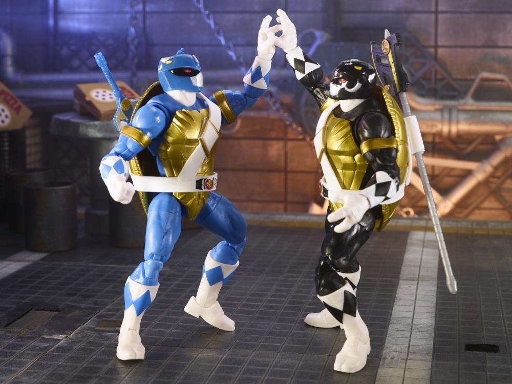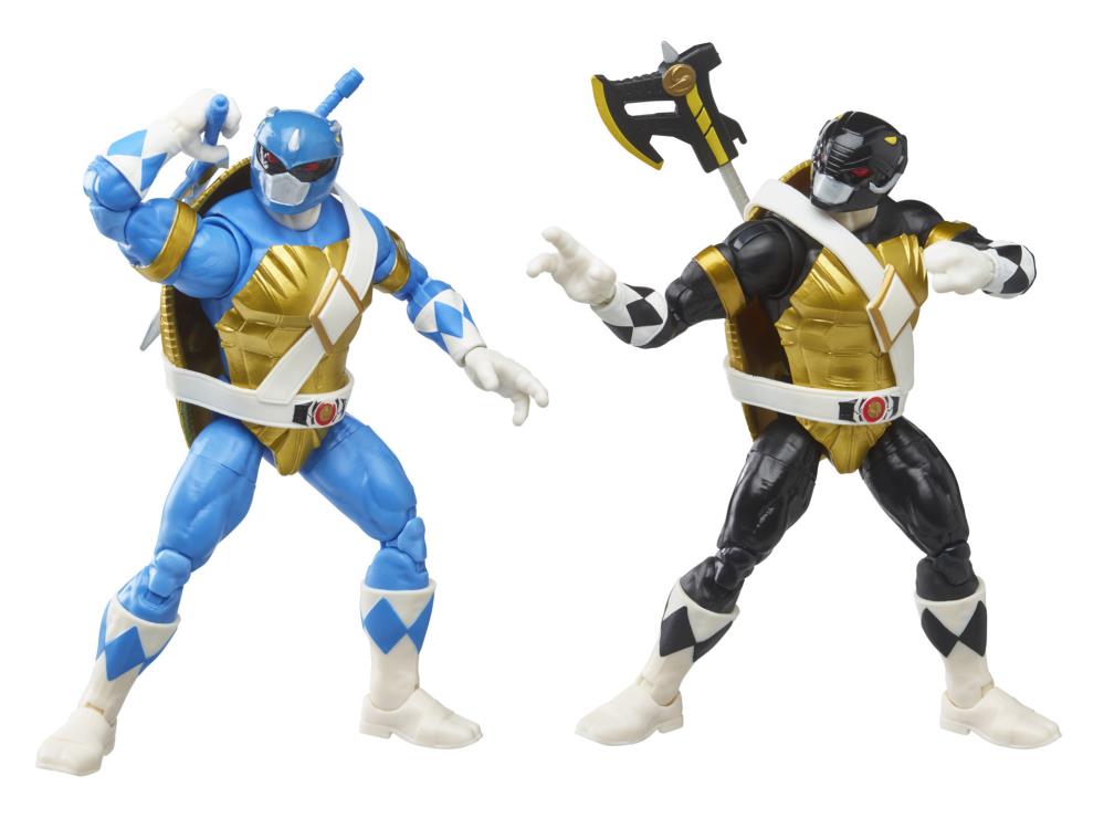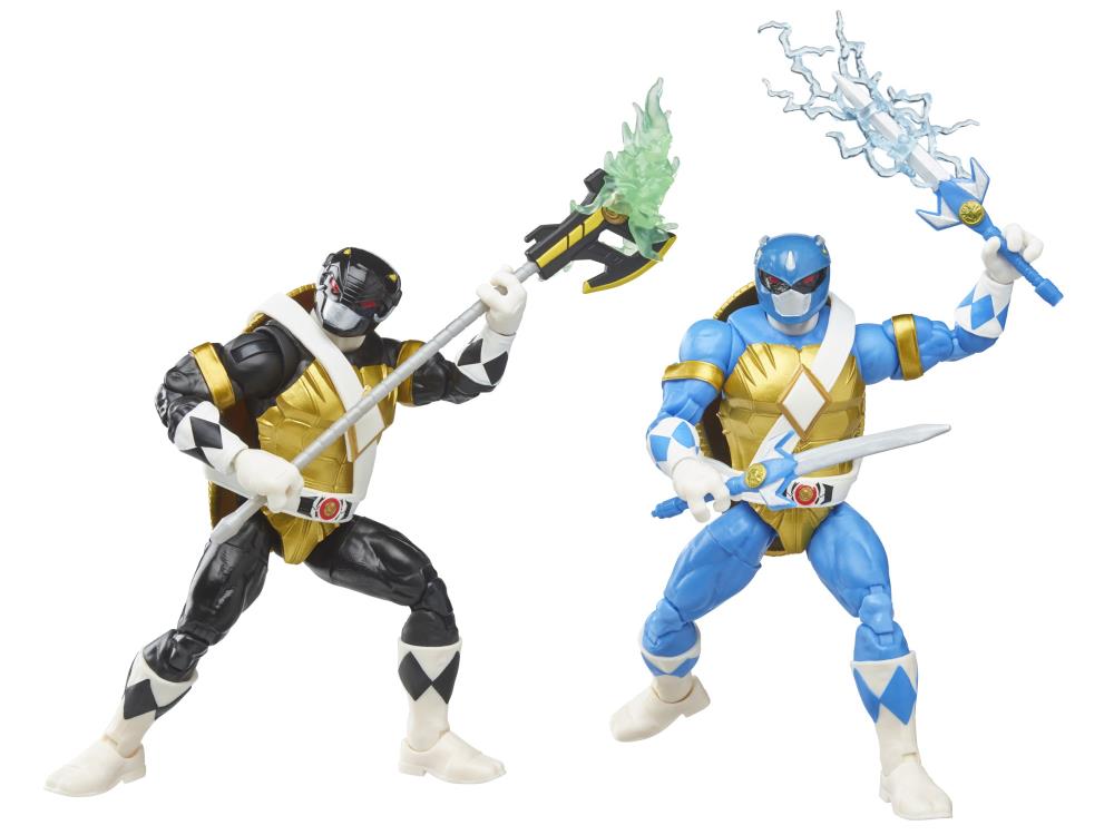 Nous le savions depuis plusieurs mois, les Tortues Ninja et les Power Rangers donneraient lieu à des figurines. Des double packs pour être exact ! Voici les premières photos et informations pour le pack proposant Leonardo et Donatello avec les pouvoirs des médailles du tricératops (bleu) et du mastodonte (noir).