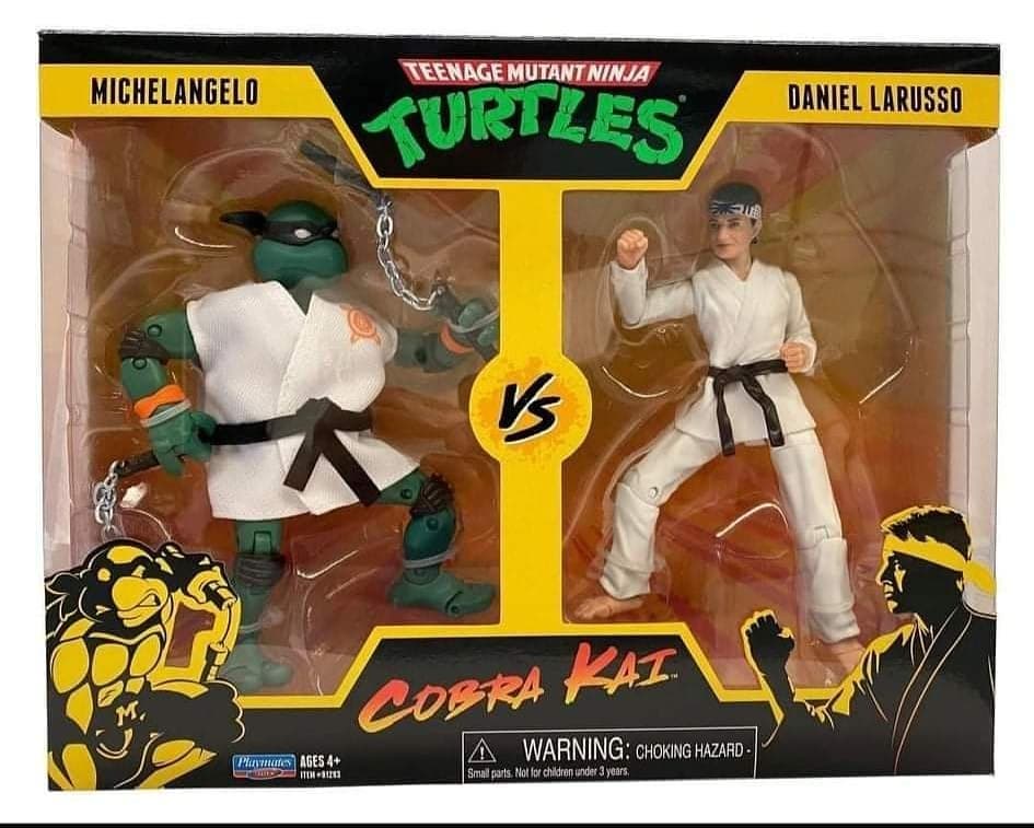 En mai dernier, nous apprenions à travers un listing de figurines que Playmates Toys préparait des figurines crossover entre les Tortues Ninja et Cobra Kai, la série dérivée de la saga Karate Kid. Les voilà enfin en photos !