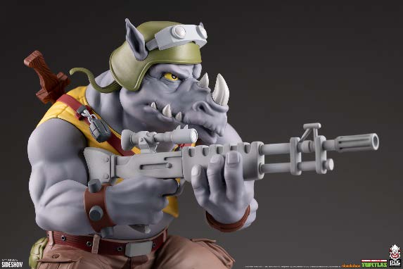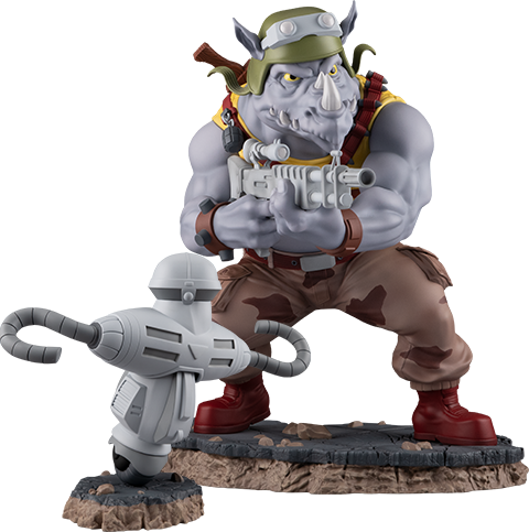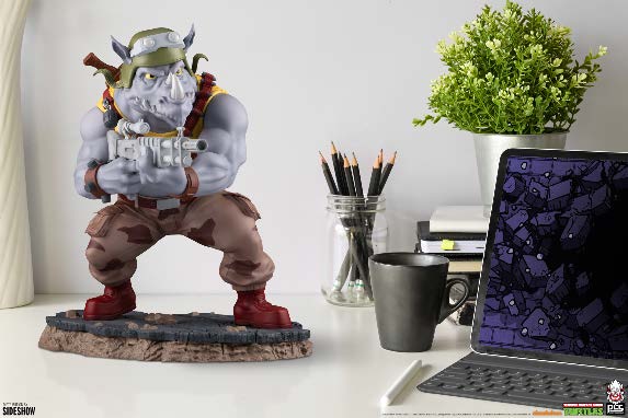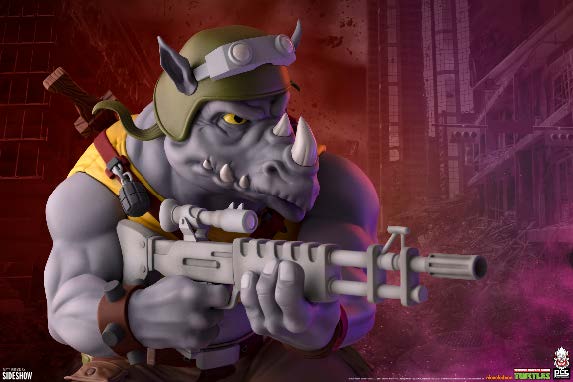 Après les tortues et Shredder, PCS présente sa statuette de Rocksteady. Le rhinocéros au format 1/4 (env. 40 cm de hauteur) est en précommande sur le site du fabricant pour 650$ (par ici). Une version exclusive au site de Sideshow, limitée à 300 exemplaires, permet pour 5$ de plus d’accompagner le mutant débile d’un Roadkill Rodney (par ici).