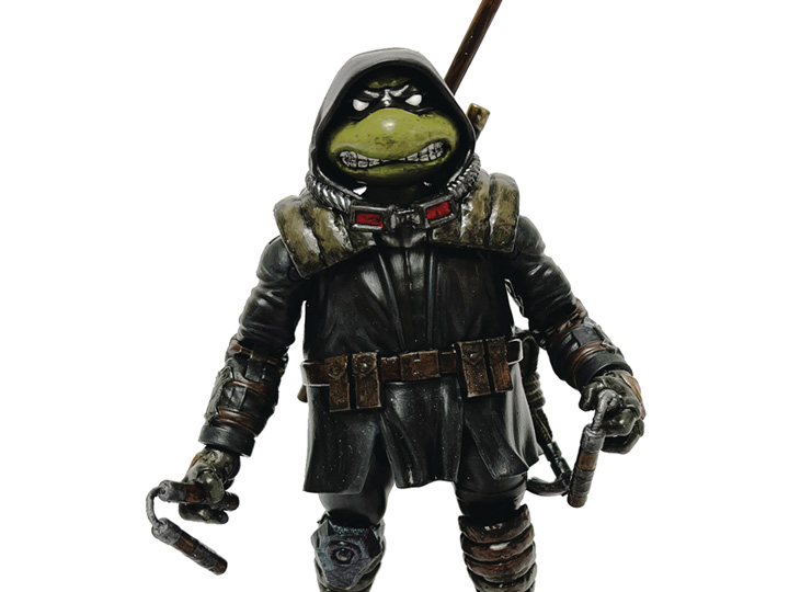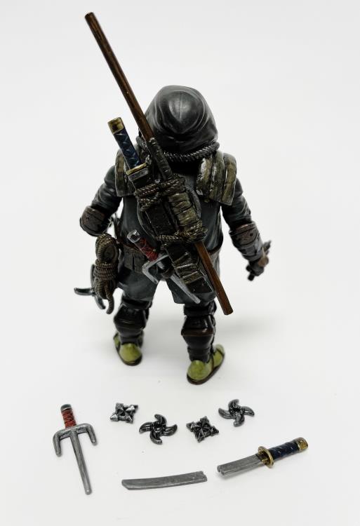 C’est à présent au tour de Playmates Toys d’annoncer son produit. Et cette fois, il s’agit bien d’une figurine ! Le dernier ronin est une exclusivité qui coûtera 29,99$ et sortira au mois d’octobre 2022. La figurine de 11,5 cm et 14 points d’articulations est accompagnée d’une paire de saïs, de nunchakus, un bâton, deux sabres (dont un brisé), quatre shurikens et un grappin avec corde à nouer à la ceinture.