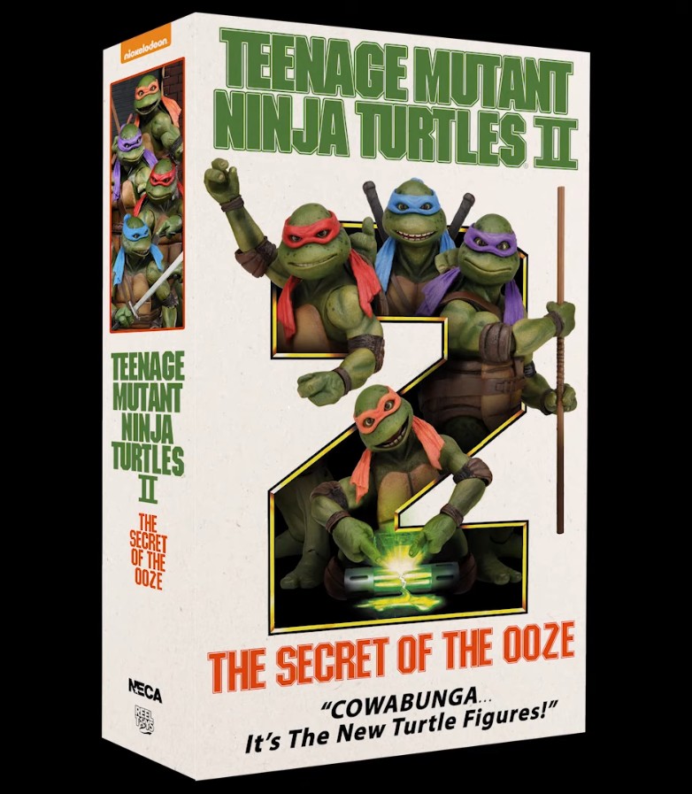 Le pack des tortues sera expédié à travers une boîte contenant les quatre mutants, le tout dans un étui rendant hommage à la VHS américaine du deuxième film des Tortues Ninja. Cela rappelle beaucoup l’exclusivité de la Comic Con de 2018 !