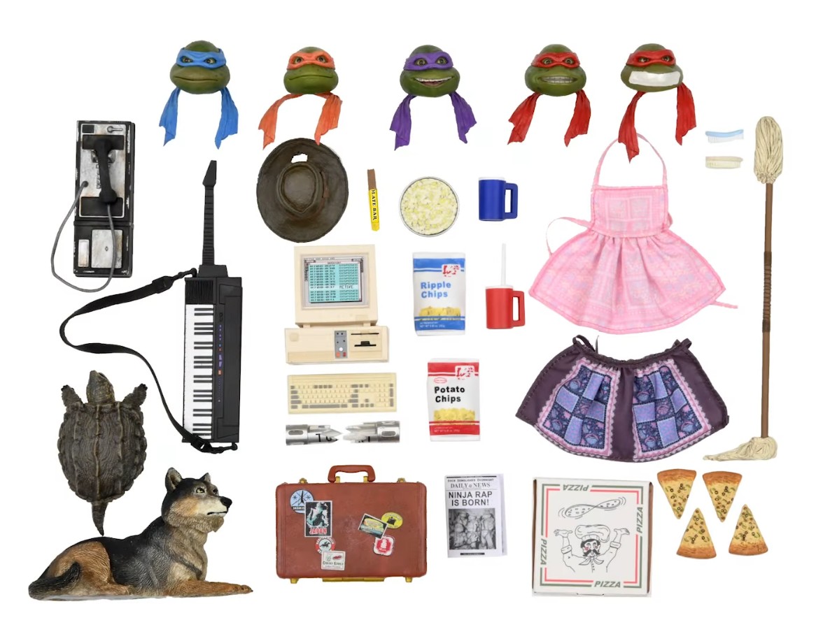 Le journal du Ninja rap, Tokka et Rahzar sous leur forme animale (Tokka peut ouvrir la gueule), les costumes de Donatello et de Michelangelo pour faire le ménage (et leurs plumeaux of course !), l’ordinateur du TGRI et le bocal de fluide brisé, des têtes interchangeables… Bref il y aura de quoi faire !