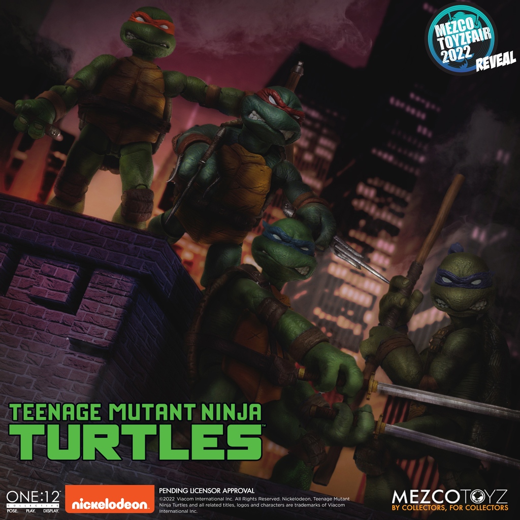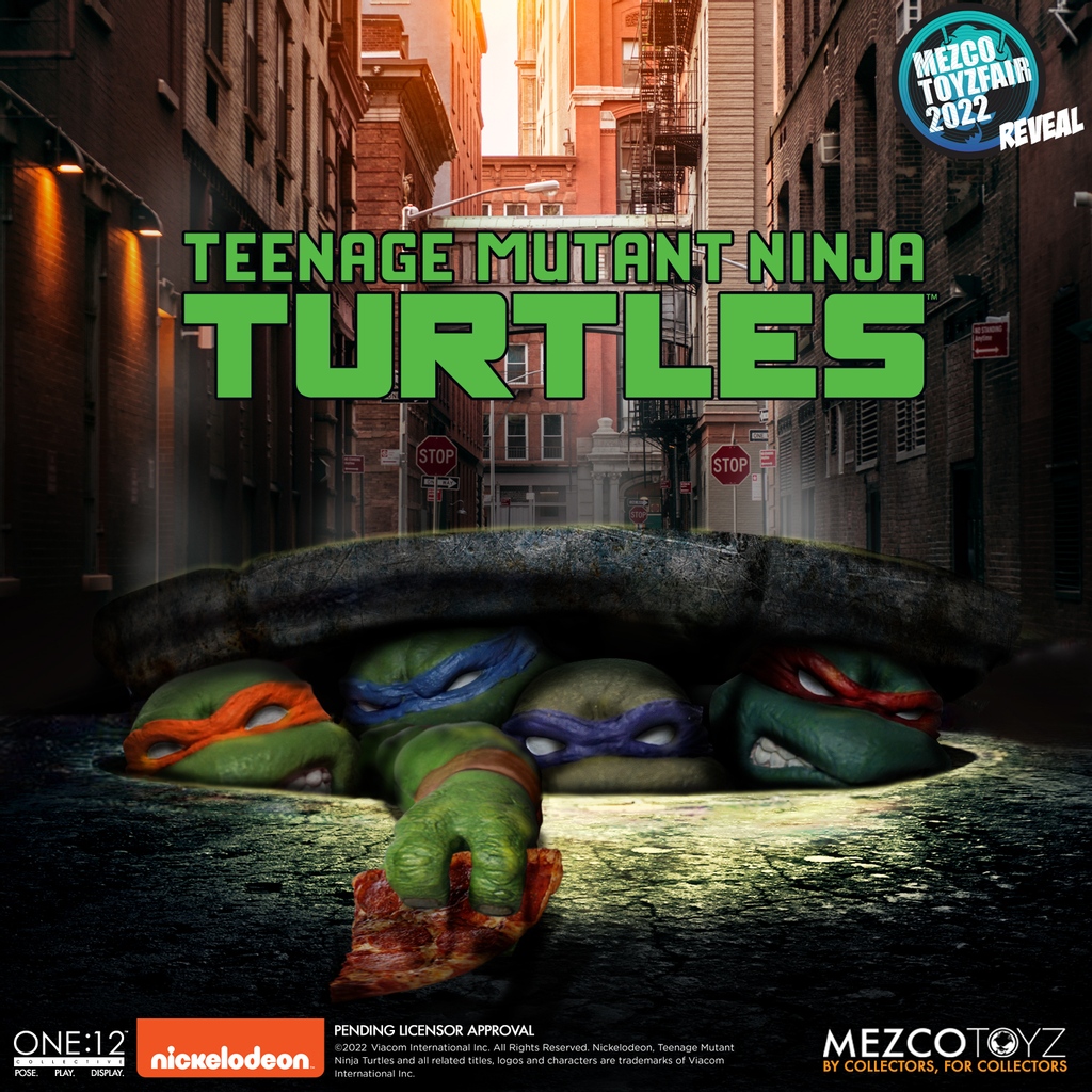 En 2020, le fabricant Mezco Toys avait publié à l’occasion de la Comic Con de New York un poster qui semblait être un teasing pour les Tortues Ninja. Mais plus d’un an et demi après, en l’absence de mise à jour, nous pensions qu’il s’agissait plutôt d’une référence à la ville hôte du Toy Fair. On y voyait une main de tortue sortir d’une bouche d’égout pour prendre une part de pizza…