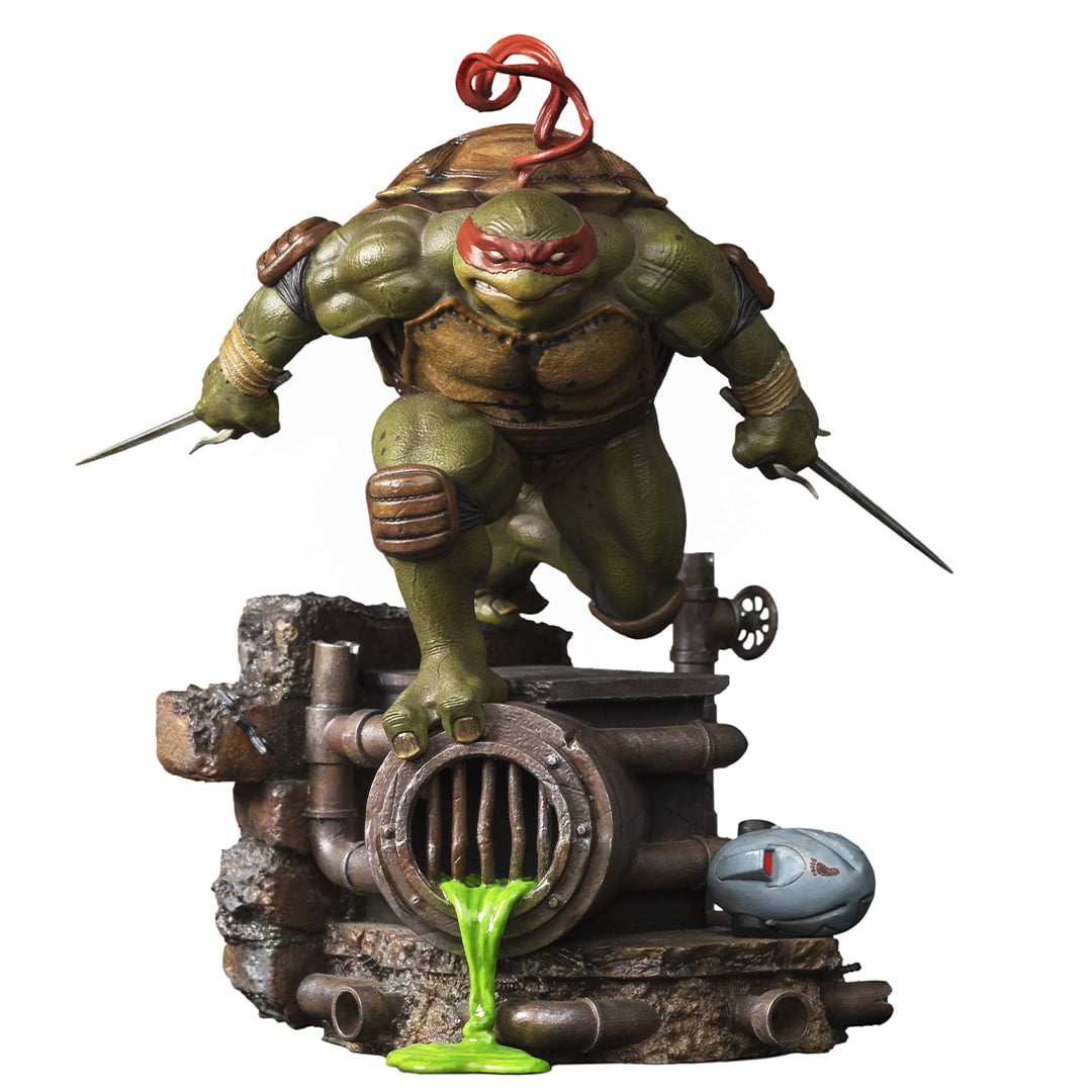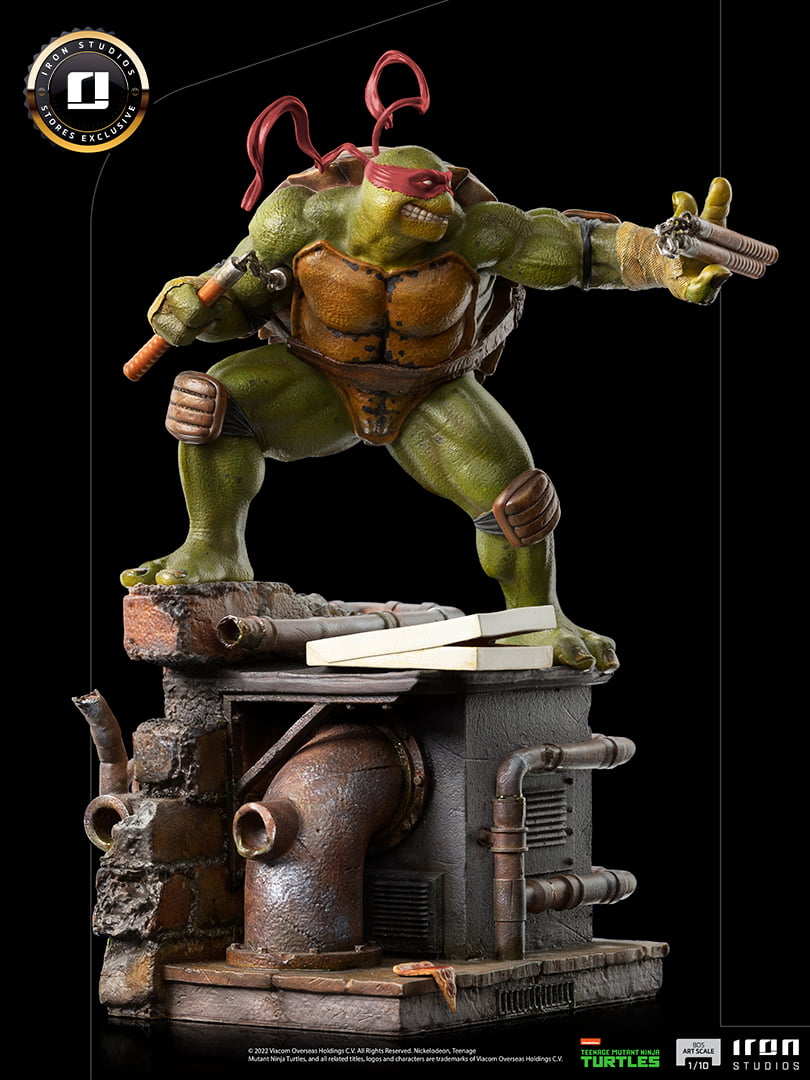 Vendredi soir, nous découvrions quatre statuettes en polystone présentant des Tortues Ninja au design bien réaliste et fort agressif (voir l’article). Le fabricant brésilien Iron Studios poursuit sur sa lancée en proposant une variante de ces statuettes, cette fois avec un bandeau rouge en hommage au comic de Mirage. Cependant, la statuette de Raphael semble totalement identique à celle de la gamme courante.