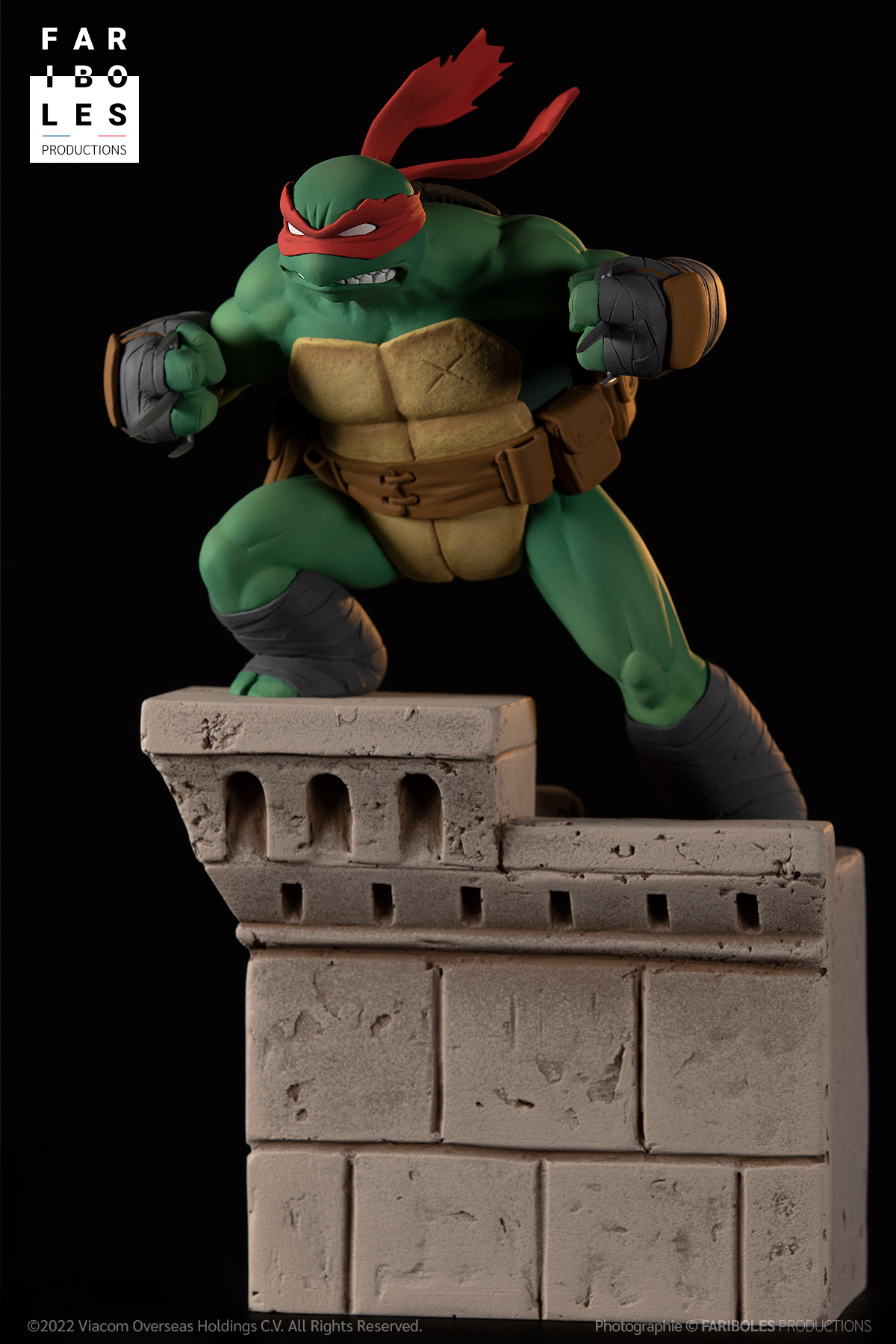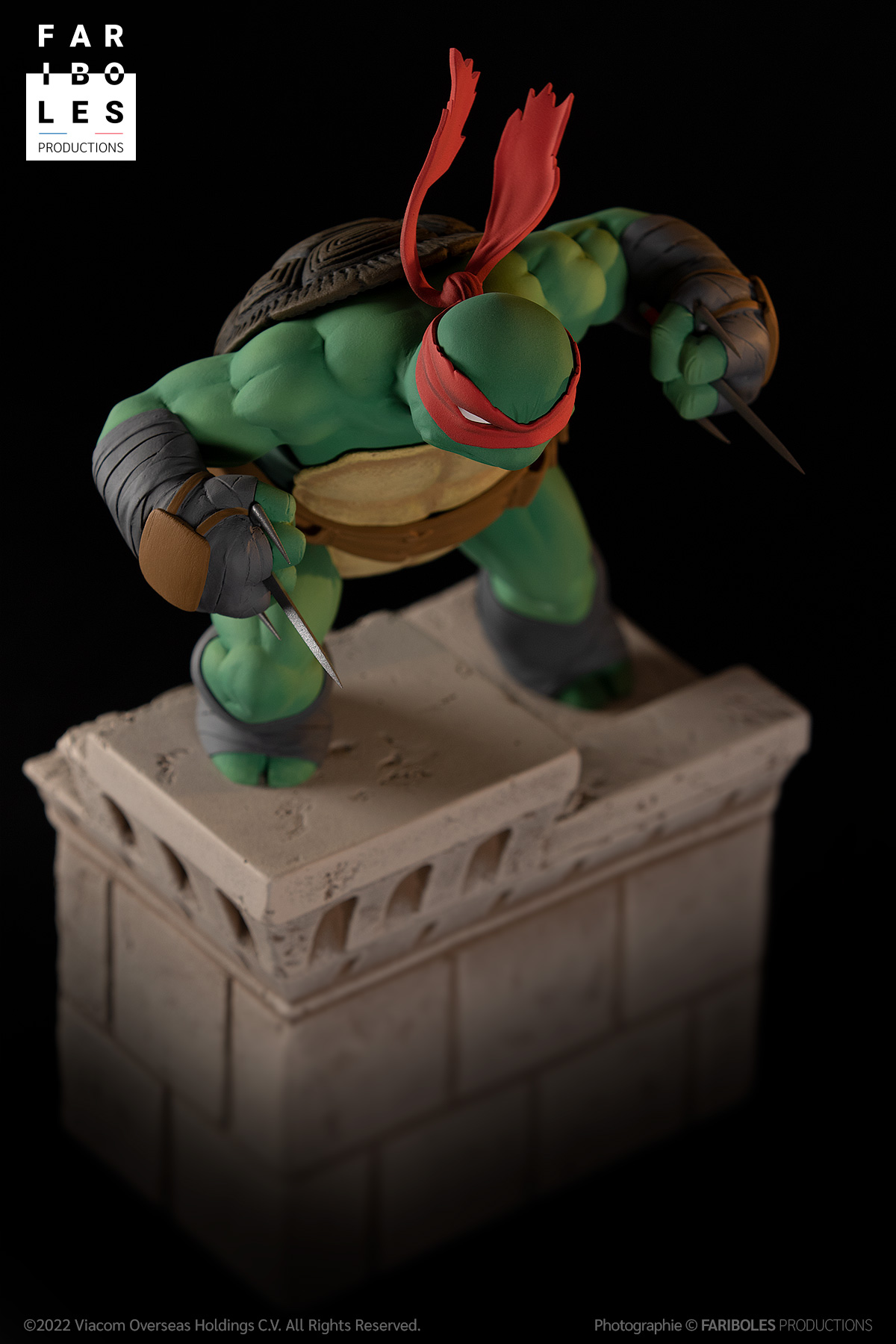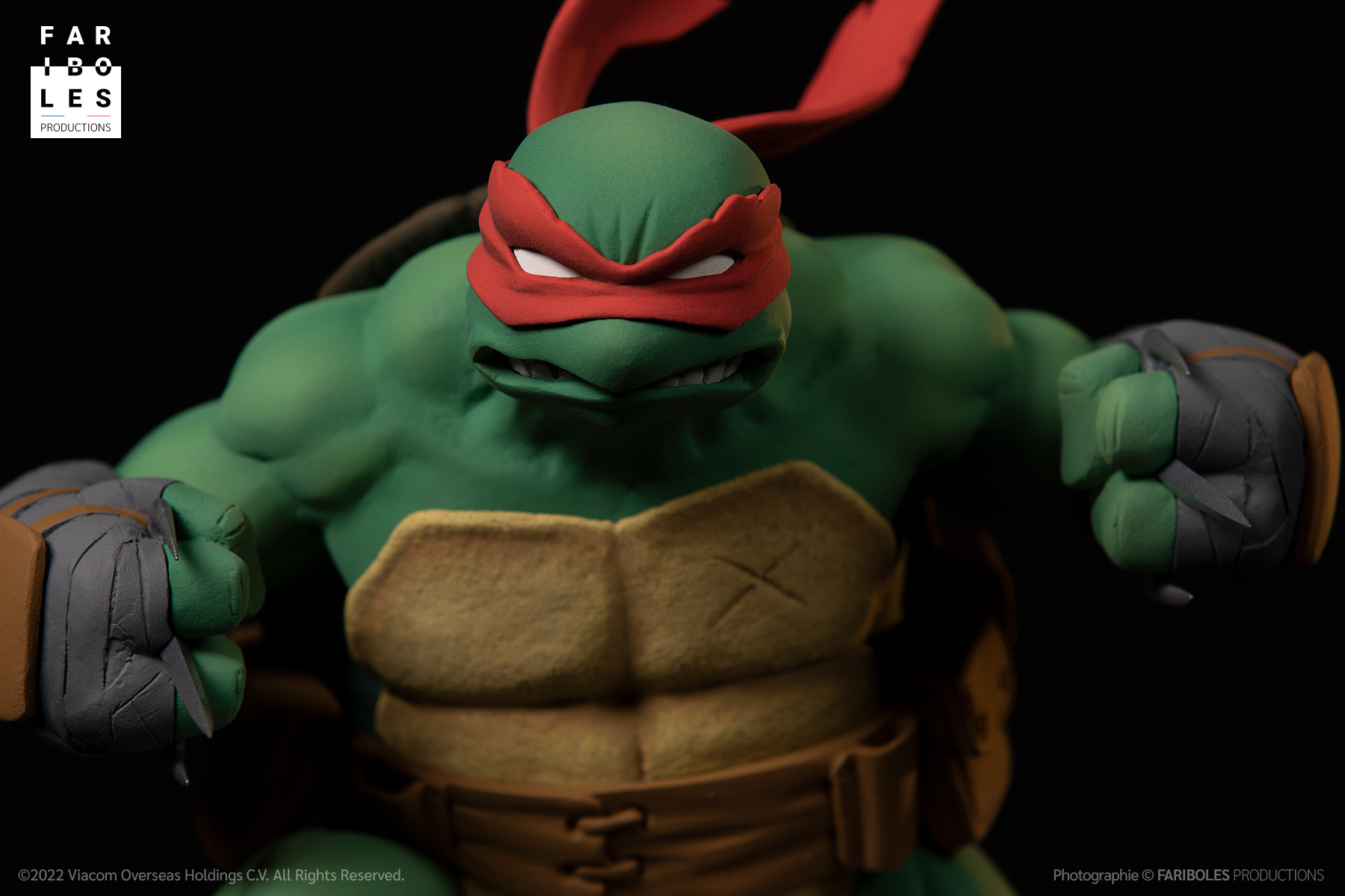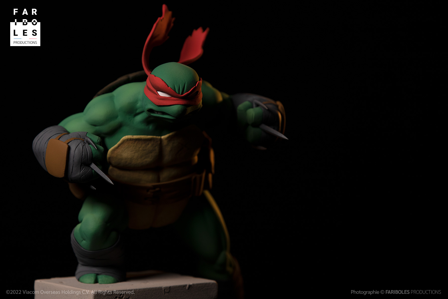 Une collaboration est née du dessinateur brésilien avec Fariboles Productions, spécialisé dans les statuettes de personnages de bandes dessinées, pour la fabrication de pièces Tortues Ninja inspirées de son design. Il s’agit de pièces officielles, estampillées Viacom. Raphael est le premier des quatre frères à avoir été réalisé (précommander par ici).
