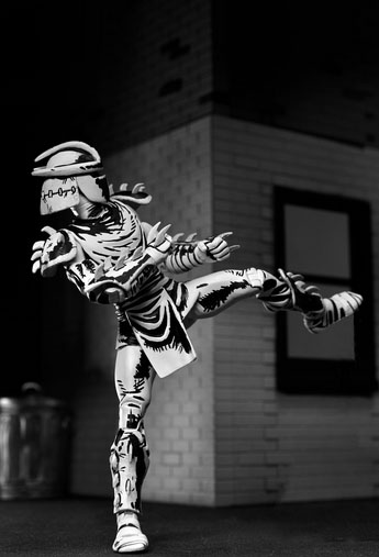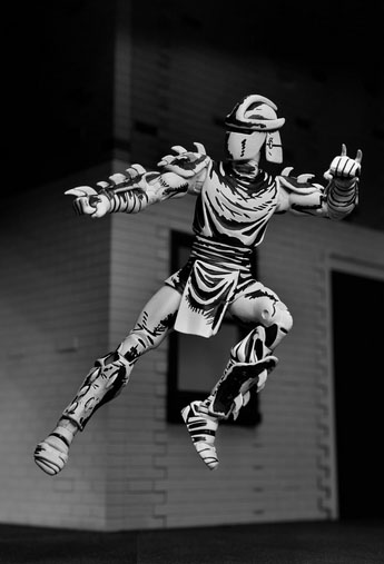 La plateforme sera lancée le 6 octobre avec de nouveaux produits régulièrement proposés. Shredder (annoncé la semaine dernière) et le Foot soldier en version black and white et la version classique de Renet (en bleu) devraient déjà être proposés pour 35$ dès jeudi.