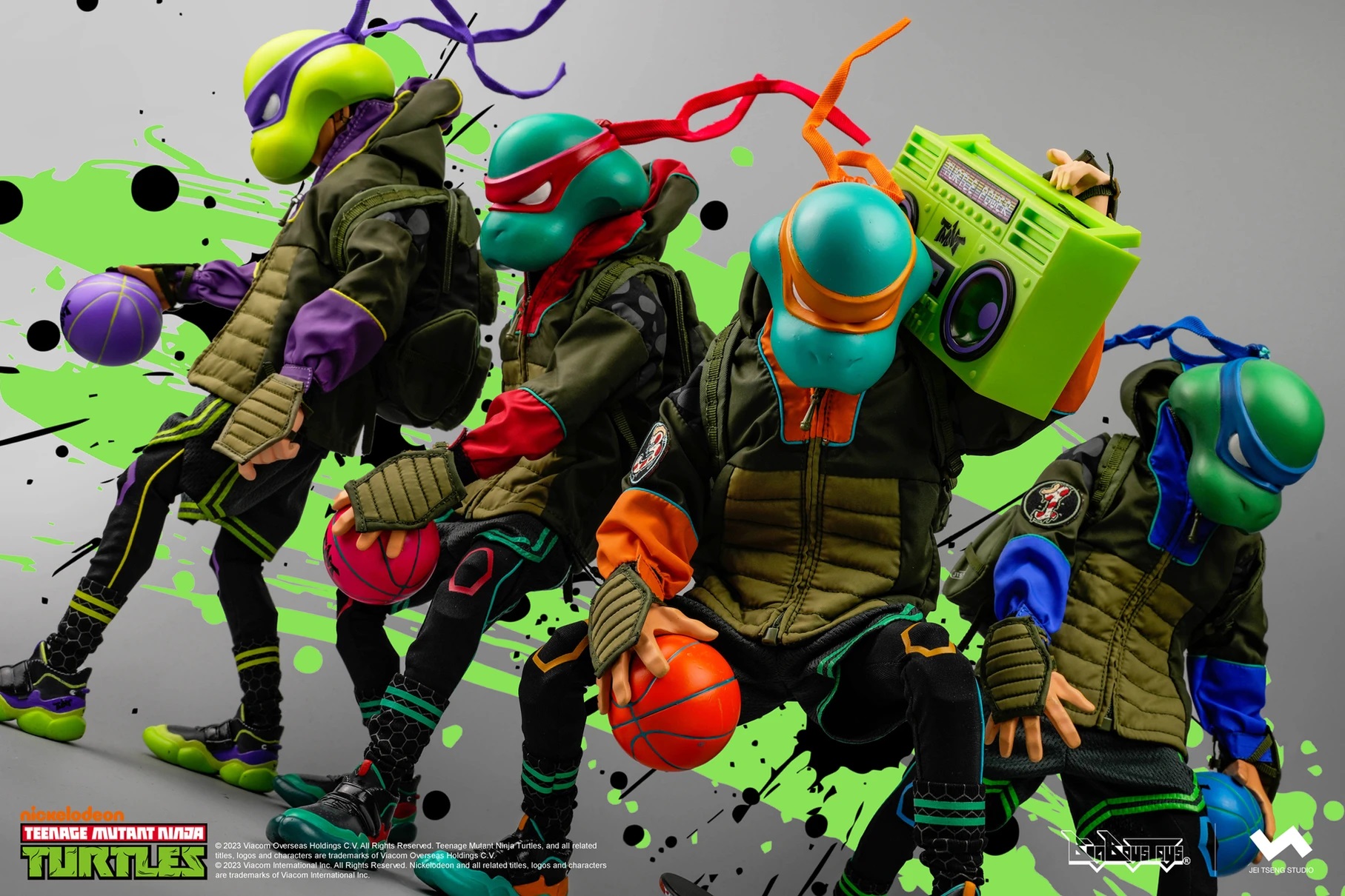 C’est une rencontre assez inattendue que nous propose Big Boys Toys, en partenariat avec JT Studios. Une nouvelle gamme de figurines au format 1/6, présentant des joueurs de basket déguisés en Tortues Ninja.
