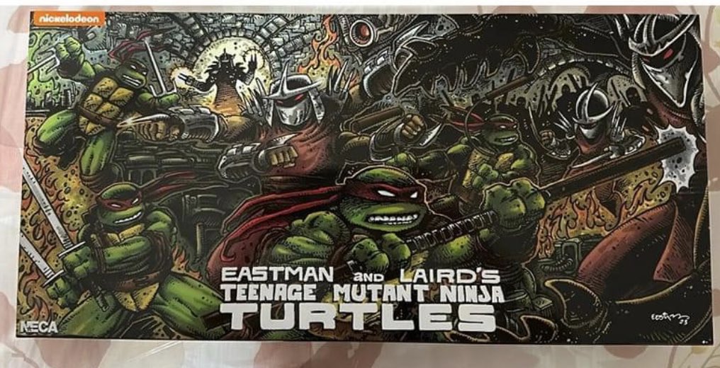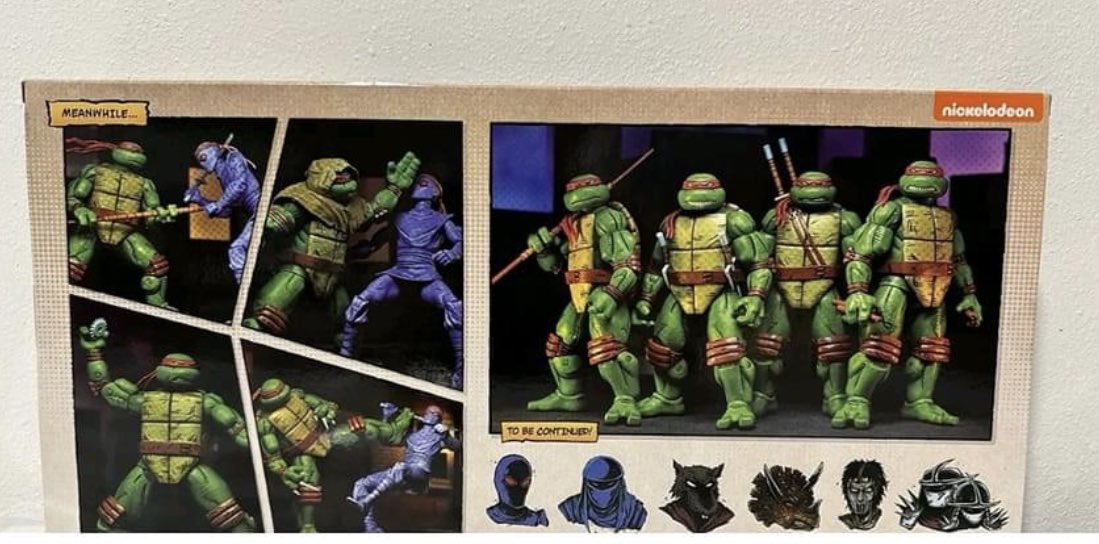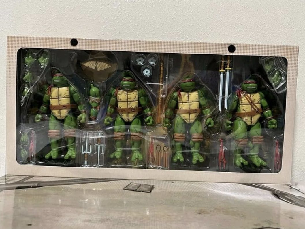 Issus du design de l’artiste Jim Lawson, le plus prolifique de tous les dessinateurs dans l’Histoire des Tortues Ninja, les frères sortiront à travers un pack de quatre figurines dont nous avons à présent les premiers visuels. Pas de date de sortie ou de prix, qui devrait avoisiner les 100 à 150$ (fourchette d’estimation large). Le set est déjà en vente sur ebay, par une personne venant de Hawai. Les prix ont déjà dépassés les 1 000$ aux enchères. Ca sort bientôt !