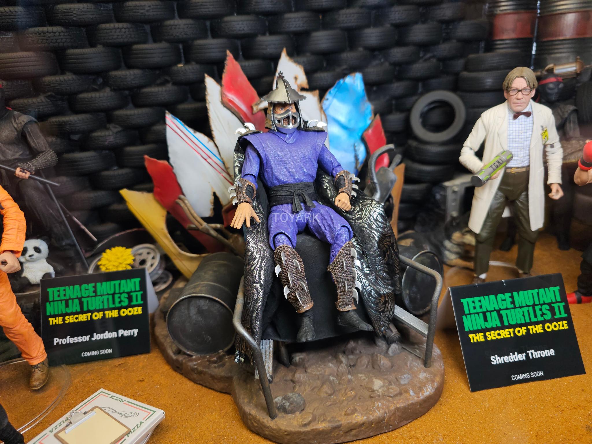 Le trône de Shredder est inspiré de la carte de Topps. C’était une pièce maîtresse que NECA voulait absolument réaliser. Le dessinateur de comics Freddie Williams les a aidés en réalisant les croquis. Le véritable trône n’a donc pas pu être étudié pour en faire une pièce 100% fidèle. Sortie l’année prochaine.