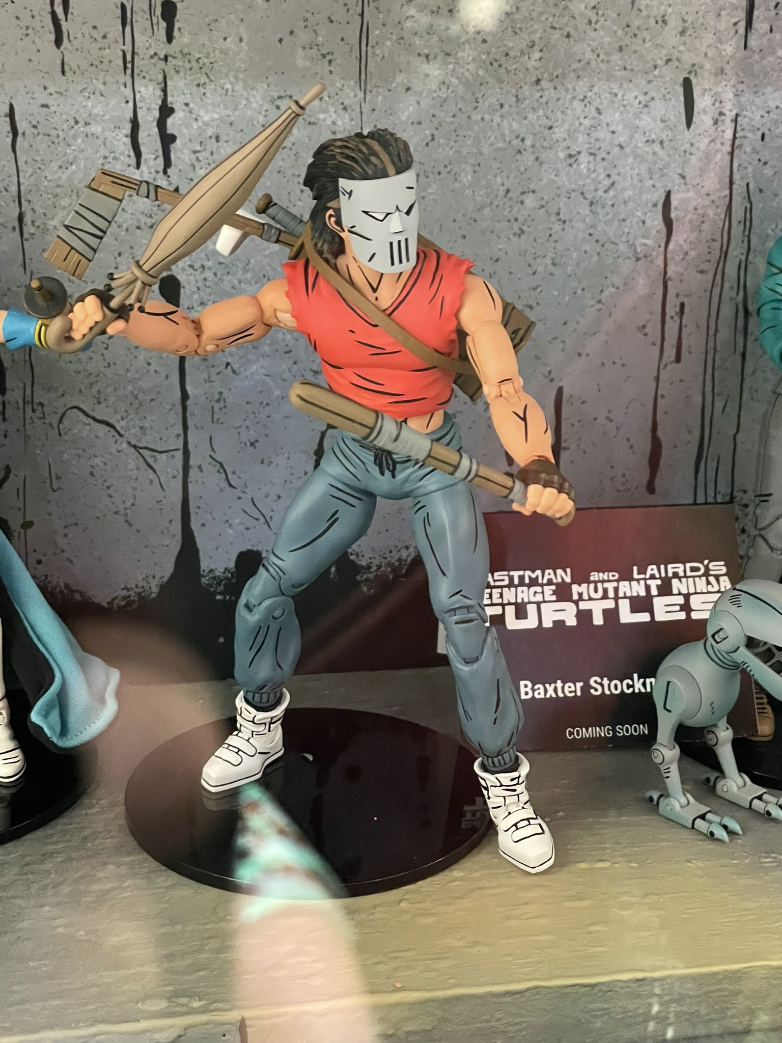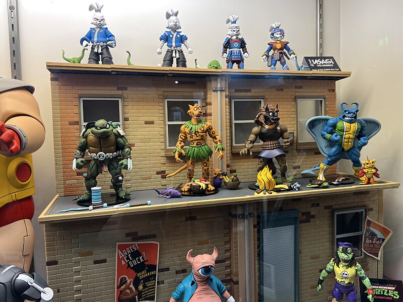 Le présentoir de Mirage est certainement l’un des plus complets pour les TMNT de NECA. On en a fait du chemin ! Parmi les nombreuses figurines présentées, nous découvrons deux nouveaux visages, ceux de Baxter Stockman (TMNT (vol. 1) #2 et du Rat King (TMNT (vol. 1) #54) !