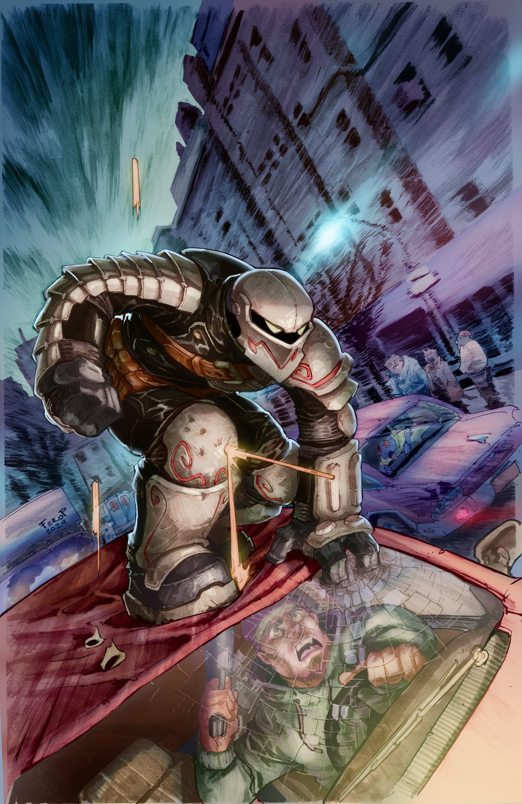 « Travailler sur les Tortues est un rêve qui se réalise. J’étais un fan inconditionnel des tortues étant enfant (j’avais le Turtle van, le sewer playset) et j’ai toujours aimé les personnages. C’est incroyable de voir toute la passion derrière ces personnages, même à travers les différentes itérations au cours des années. J’espérais que quelqu’un m’invite pour faire quelque chose avec elles [les tortues] depuis un long, long moment. Que cela se produise lors de l’anniversaire des Tortues est un vrai régal… La cerise sur le gâteau, ou le pepperoni sur la pizza si vous préférez ».