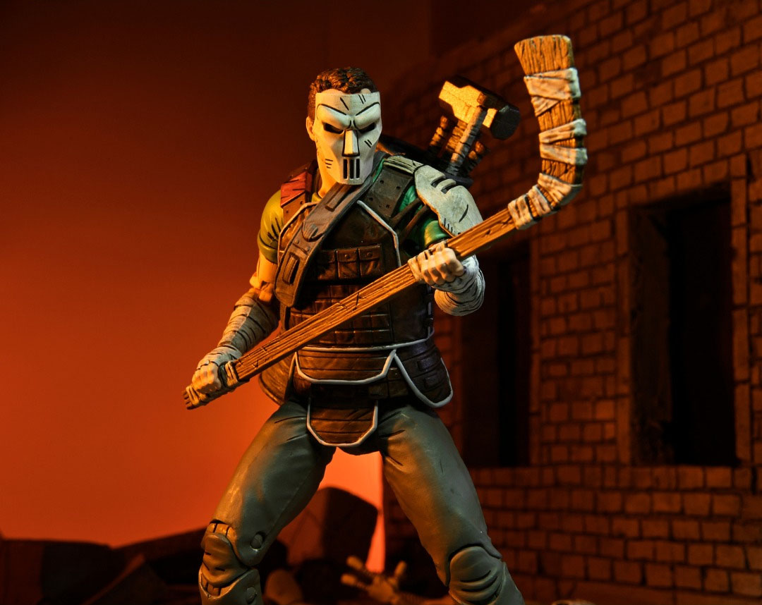 Hier soir, NECA a publié les images officielles de sa figurine de Casey Jones, principalement apparu dans The last ronin #3. Le justicier au masque de hockey possèdera bien deux têtes interchangeables, avec et sans masque, mais aussi un large arsenal d’armes en tous genre, son sac de golf, et plusieurs paires de mains interchangeables.