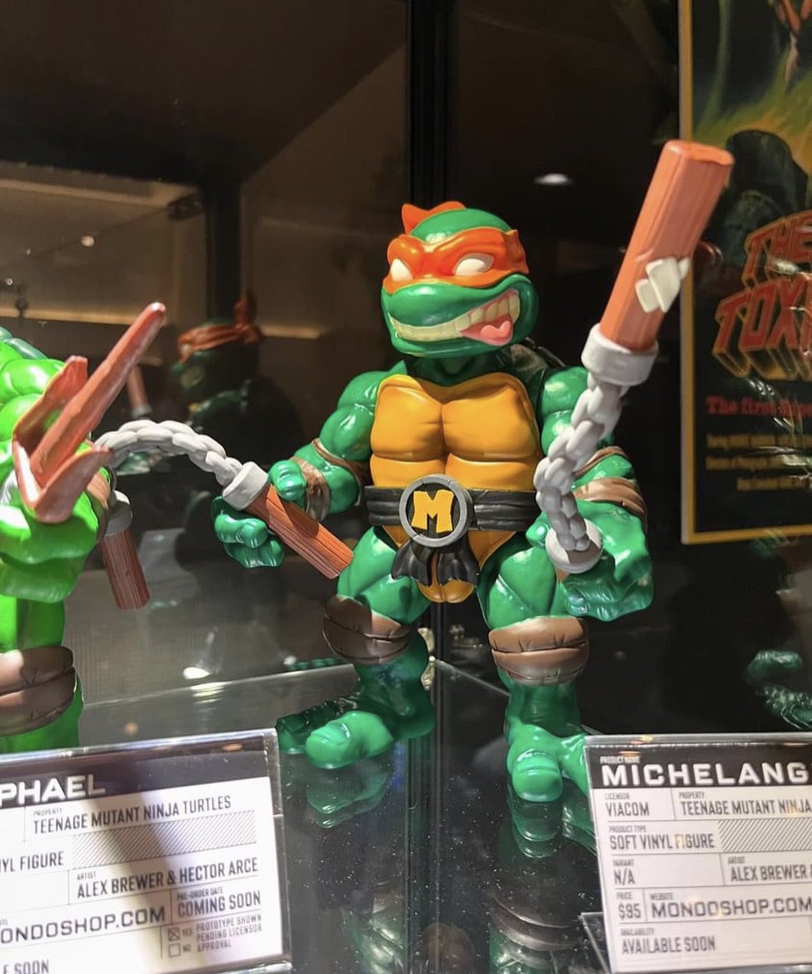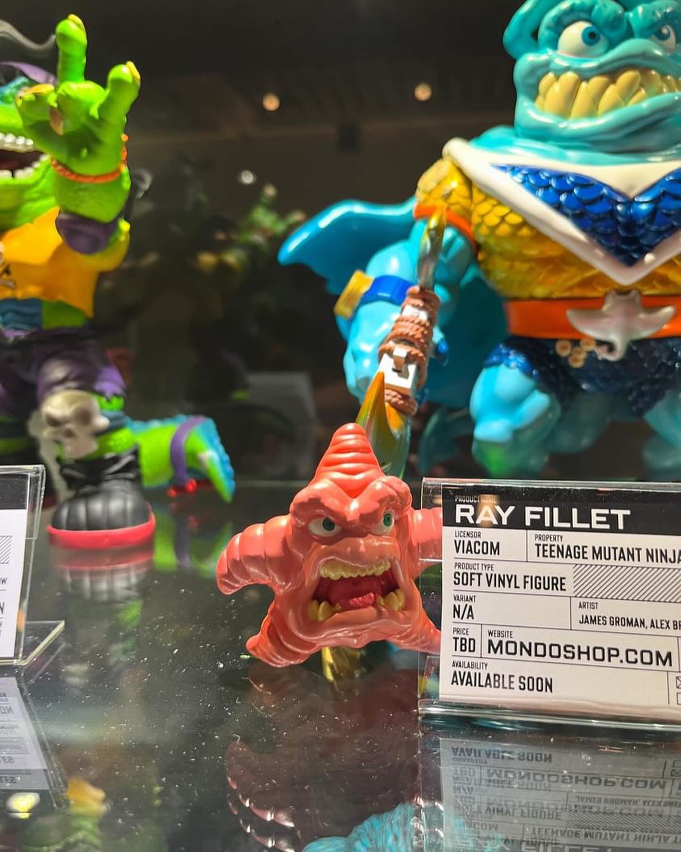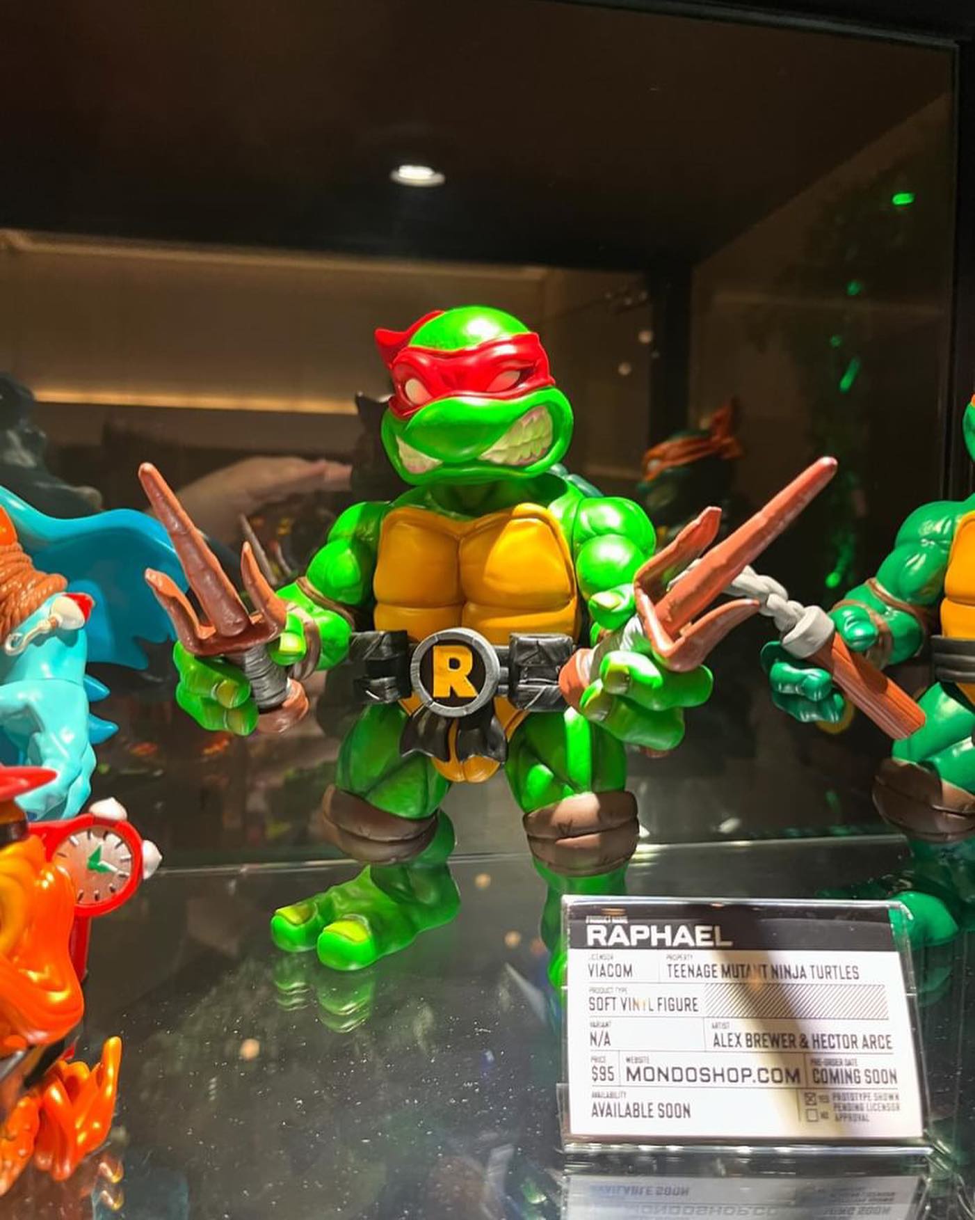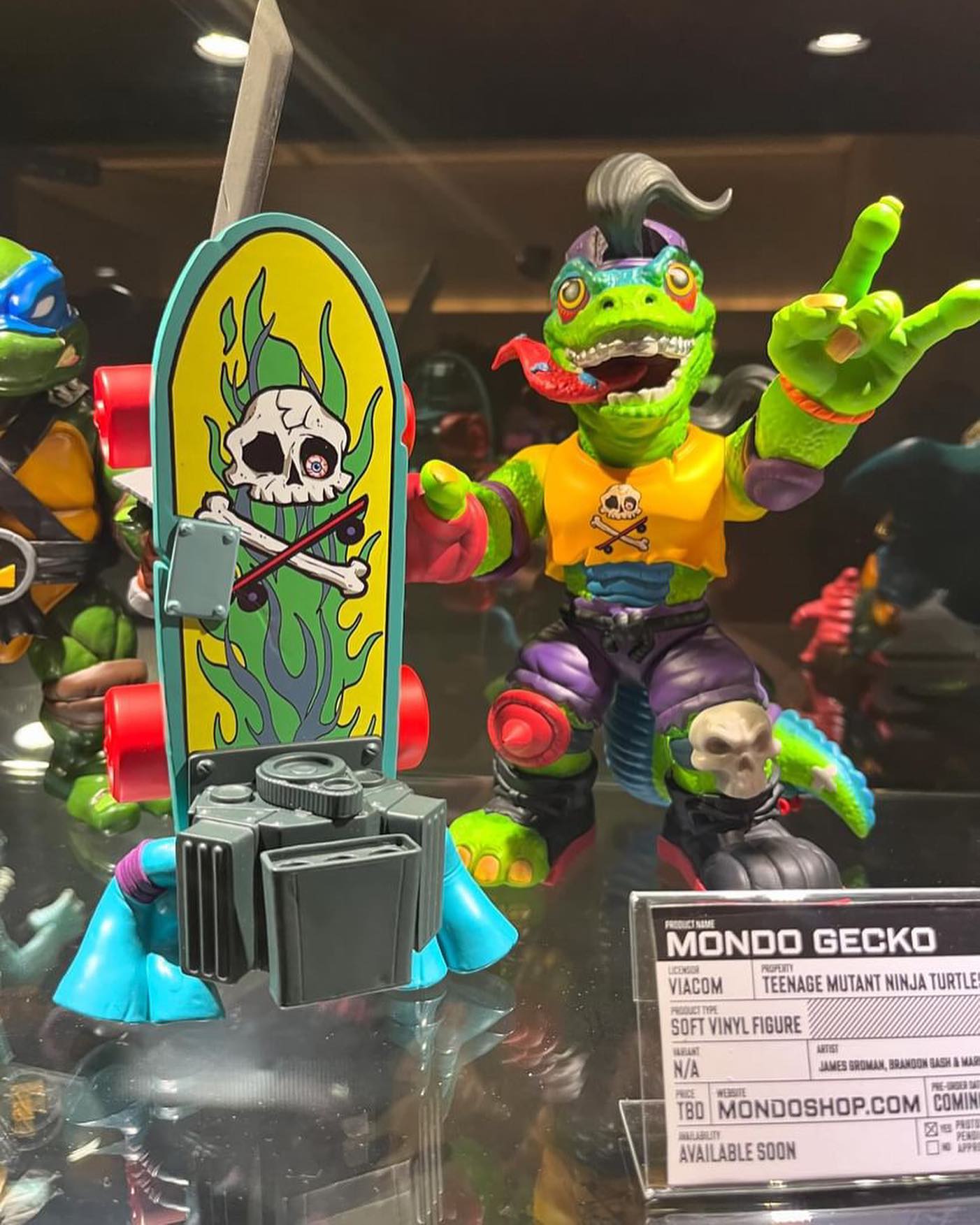 Les fans qui se trouvaient sur place ont ainsi pu découvrir Raphael et Michelangelo, mais aussi les prototypes de Mondo Gecko et de Ray Fillet, qui n’attendent plus qu’une approbation de Viacom. Les deux tortues sont sculptées Alex Brewer. L’artiste est rejoint sur Mondo Gecko et Ray Fillet par le grand James Groman, à qui l’on doit déjà les designs des figurines des TMNT x Universal Studio Monsters de NECA. L’équipe est complétée par Hector Arce à la peinture.