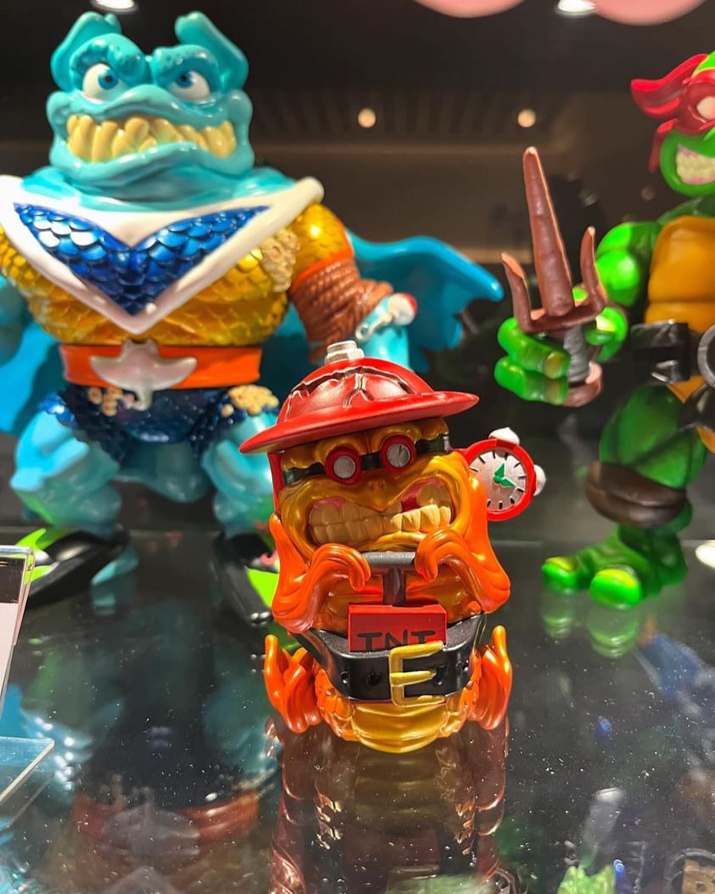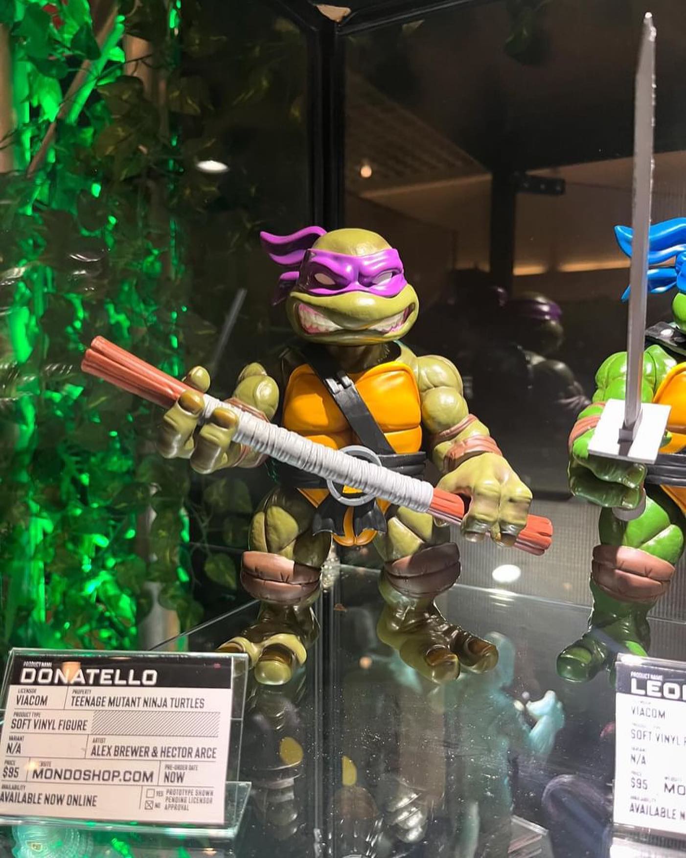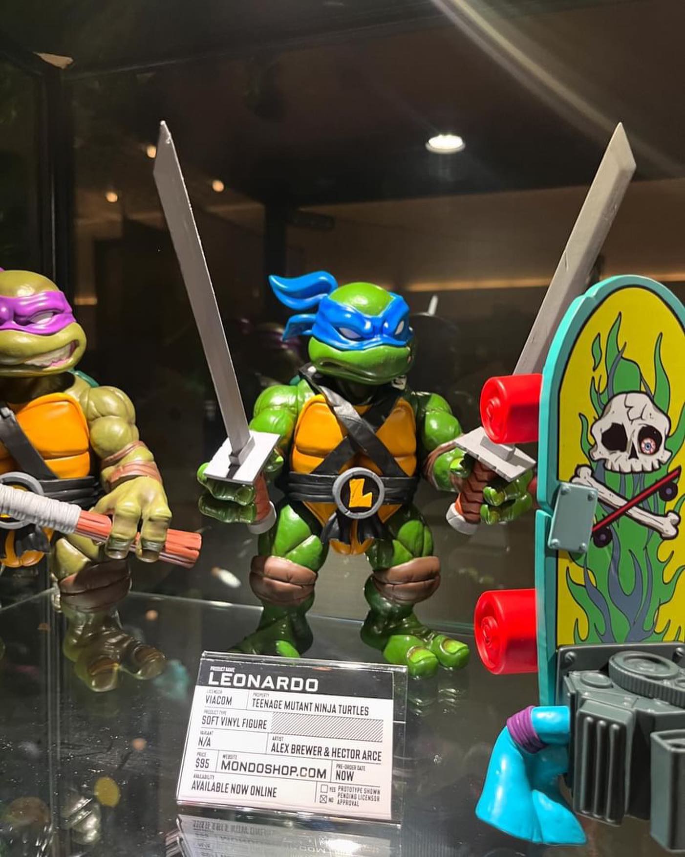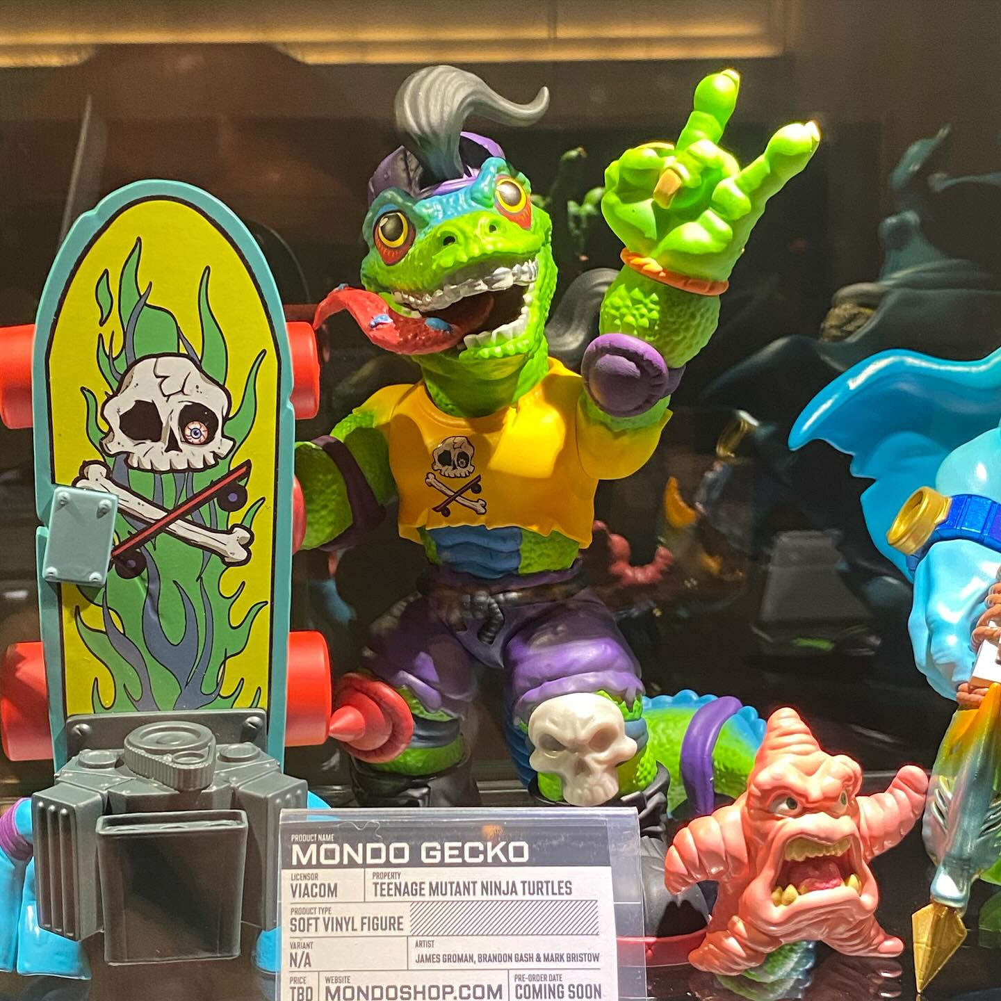 Les fans qui se trouvaient sur place ont ainsi pu découvrir Raphael et Michelangelo, mais aussi les prototypes de Mondo Gecko et de Ray Fillet, qui n’attendent plus qu’une approbation de Viacom. Les deux tortues sont sculptées Alex Brewer. L’artiste est rejoint sur Mondo Gecko et Ray Fillet par le grand James Groman, à qui l’on doit déjà les designs des figurines des TMNT x Universal Studio Monsters de NECA. L’équipe est complétée par Hector Arce à la peinture.