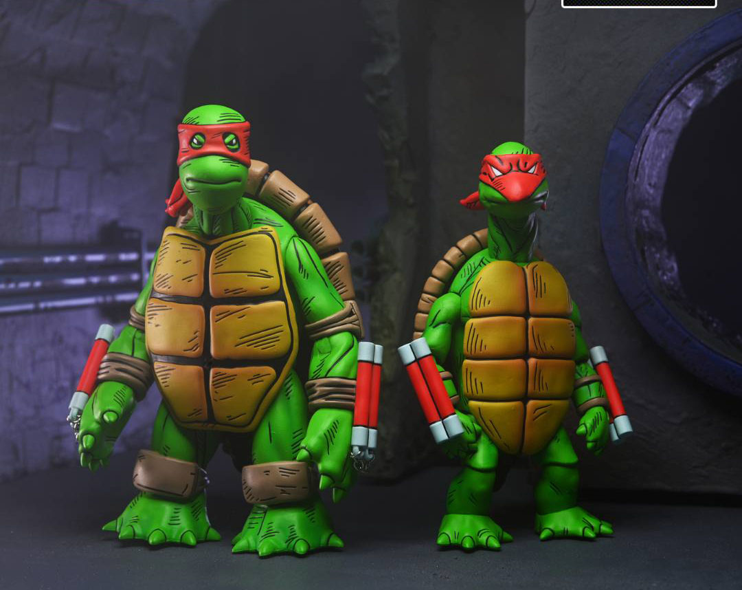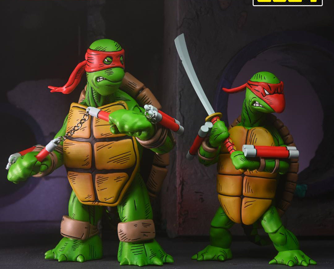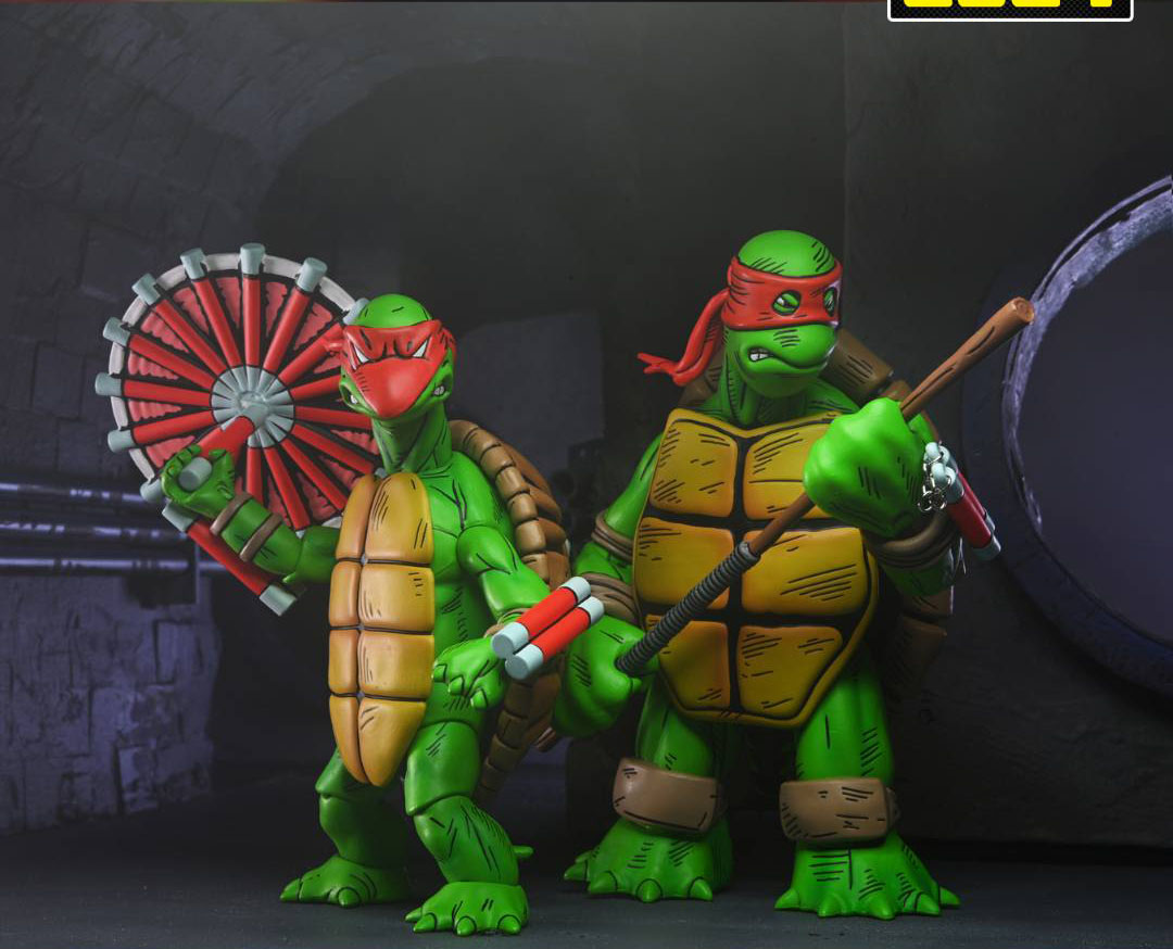 L’un des fabricants les plus attendus de la Comic Con de San Diego, NECA, a enfin dévoilé son exclusivité pour le salon, qui se tiendra le mois prochain. Il s’agira des deux premières tortues, dessinées par Kevin Eastman et Peter Laird, en novembre 1983 (en savoir plus). Ces designs archaïques donneront naissance, par la suite, aux tortues du comic de Mirage !