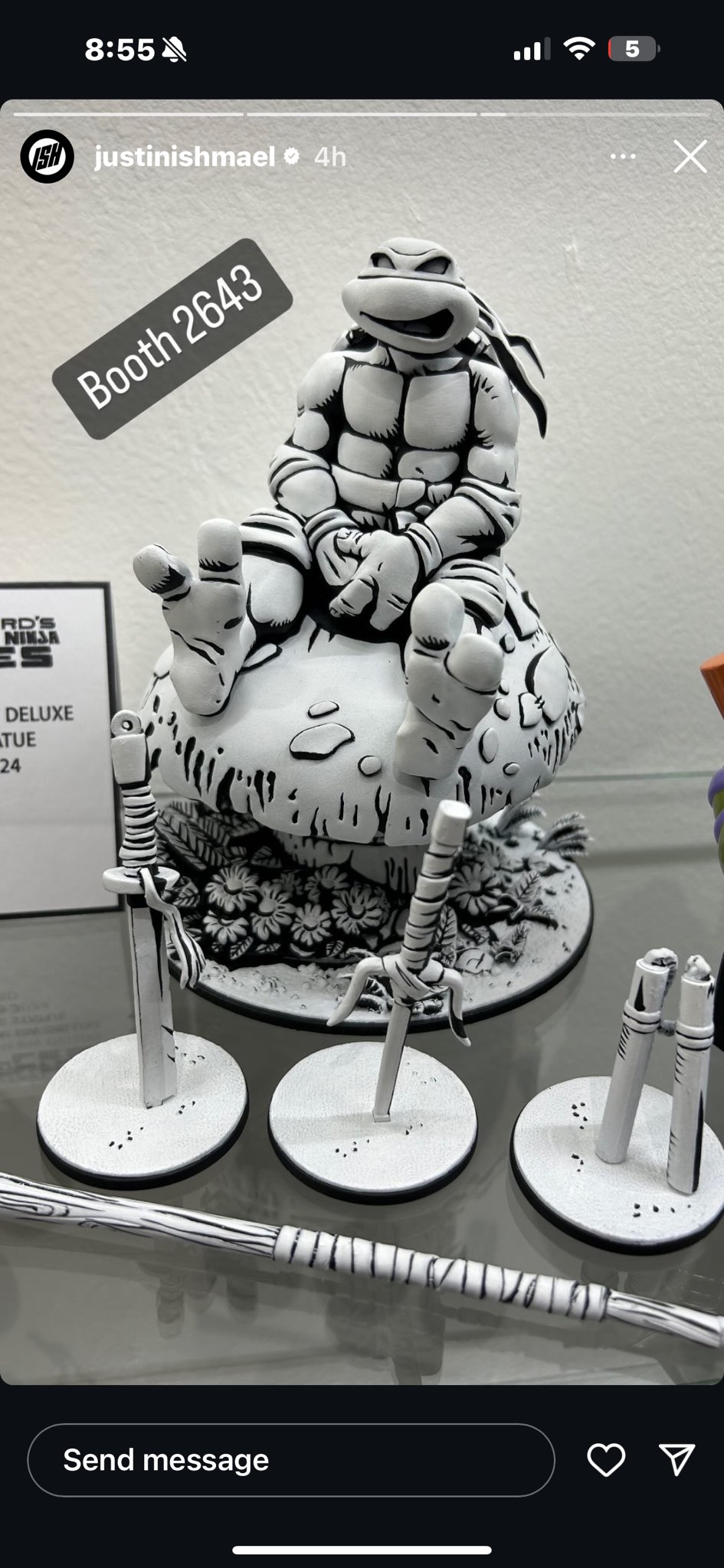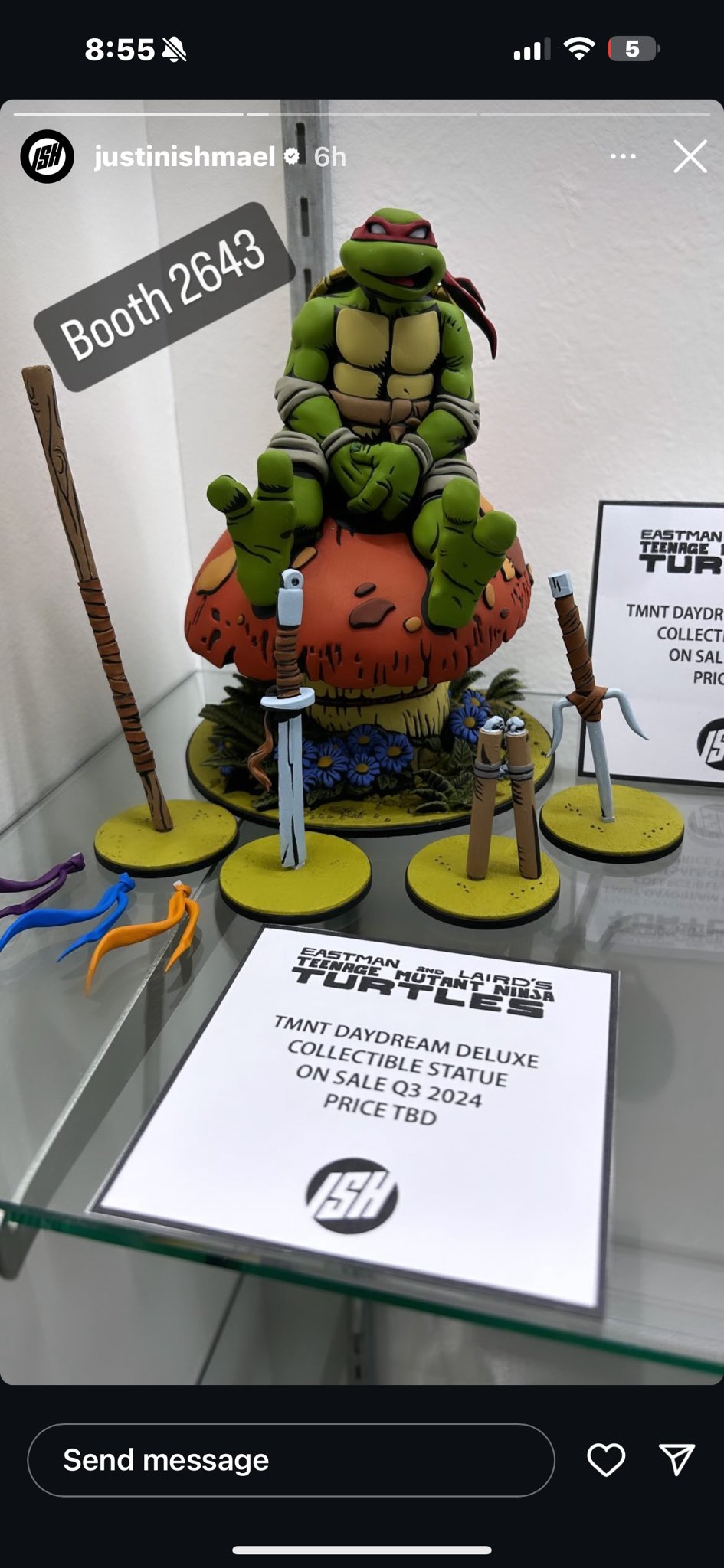 La statuette, intitulée « TMNT Daydream » est simplement exposée au salon sous deux formats. Une version couleur (qui hélas ne reprend pas le style du dessin originel d’Eastman) et une version noire et blanche. Les quatre armes des tortues se trouvent au pied du champignon, sur socle. Des bandeaux alternatifs de couleur seront également disponibles, possiblement pour une édition plus limitée. Attendues pour le troisième trimestre 2024, aucun prix n’est encore annoncé pour ces pièces. Au vu des productions précédentes, nous pouvons nous attendre à un produit dont le prix de départ sera autour de 75/100$.