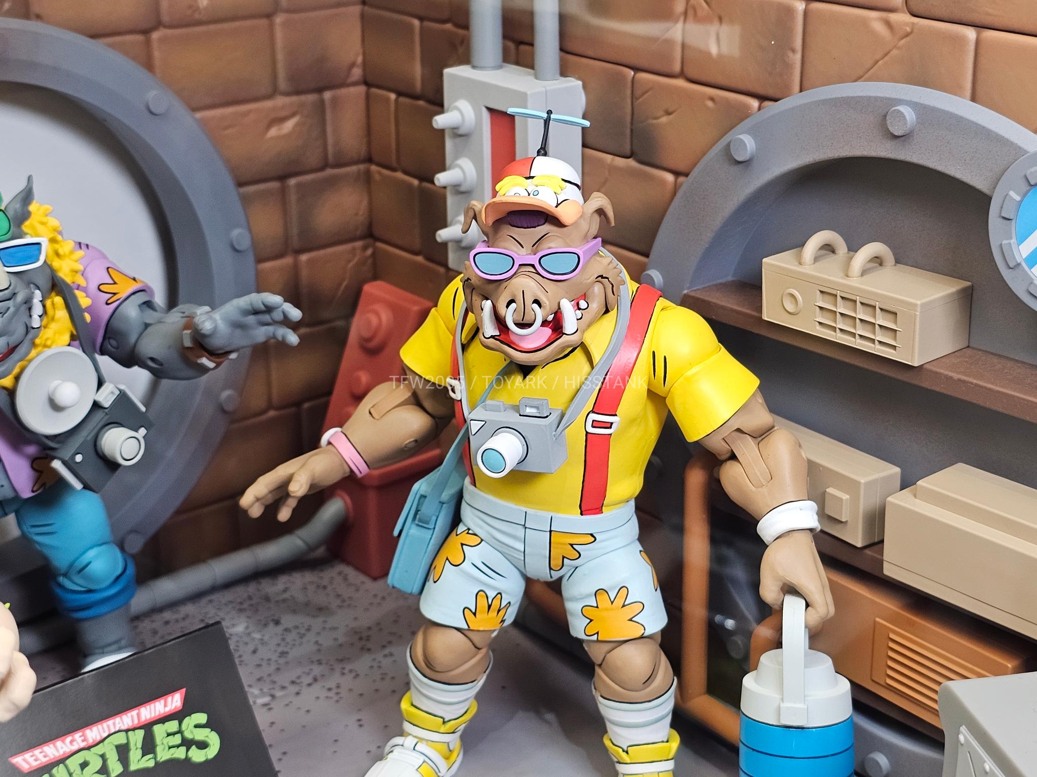 Un nouveau pack de Bebop et de Rocksteady fera également son apparition, avec les tenues de vacances venues de l’épisode Napoleon (S5 E9). Les deux mutants accompagnaient Shredder dans les marais de Floride à la recherche de mutagène pour créer des super-mutants. NECA a particulièrement quelque chose avec cet épisode, puisque nous avons eu Napoleon, la terreur des marais, le fusil mutagène et le cristal Étoile de Hoboken (pack d’accessoires). Le rhinocéros et le phacochère porteront leurs belles chemises colorées, un appareil photo ou encore le moustique muté par erreur par Rocksteady.