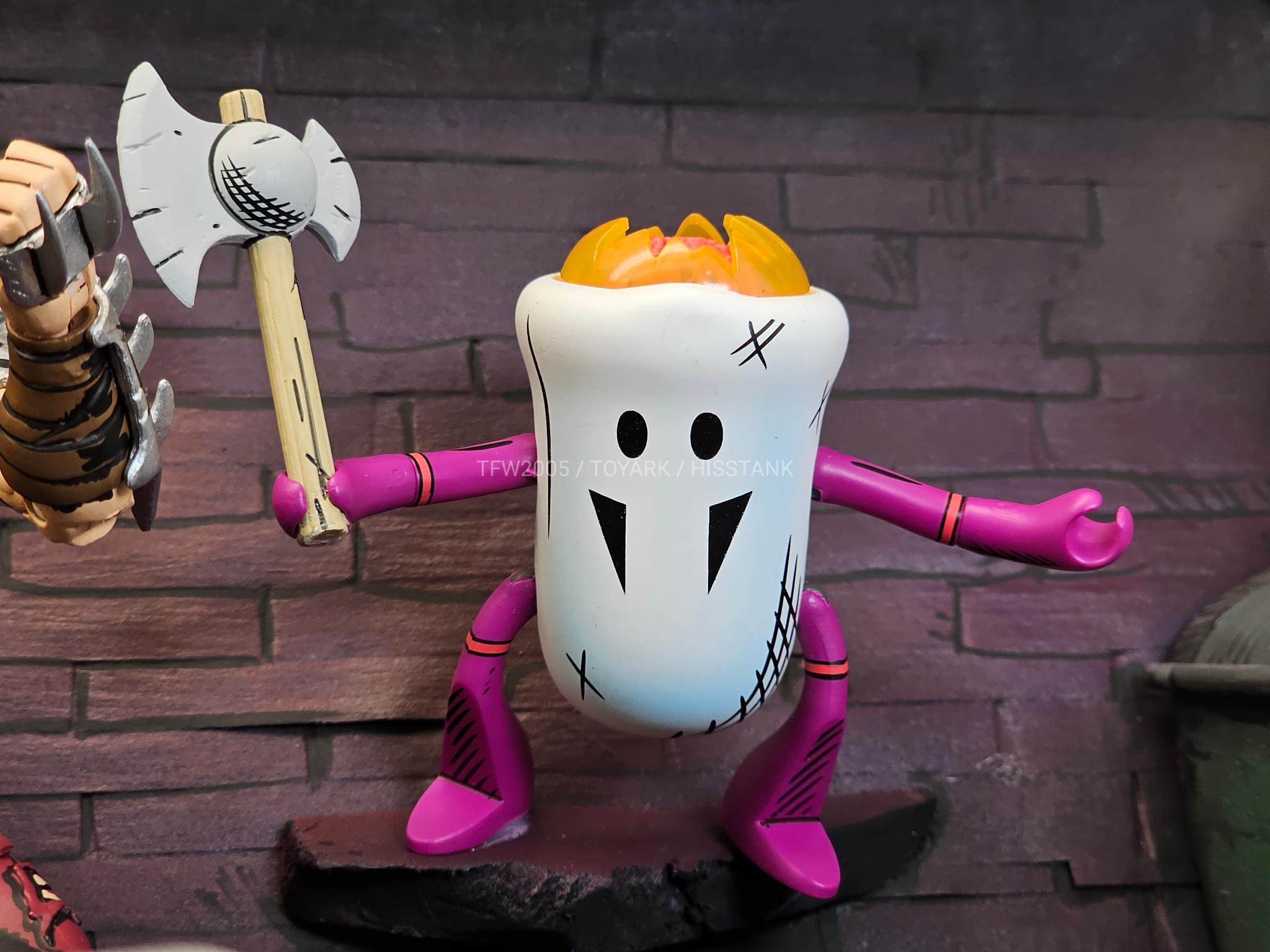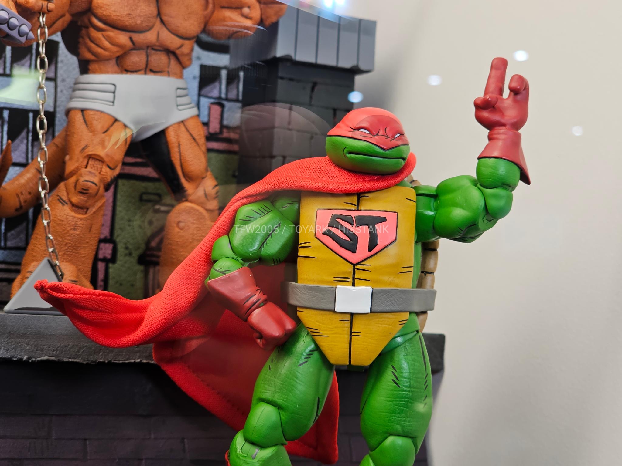 Le personnage n’est jamais apparu dans le dessin animé des Tortues Ninja. Les fans le plébiscitaient beaucoup sur les réseaux sociaux, notamment du fait de sa figurine sortie en 1990 chez Playmates Toys. Comme NECA réalise depuis quelques temps maintenant des figurines « what if », c’était l’occasion de l’intégrer dans la collection.